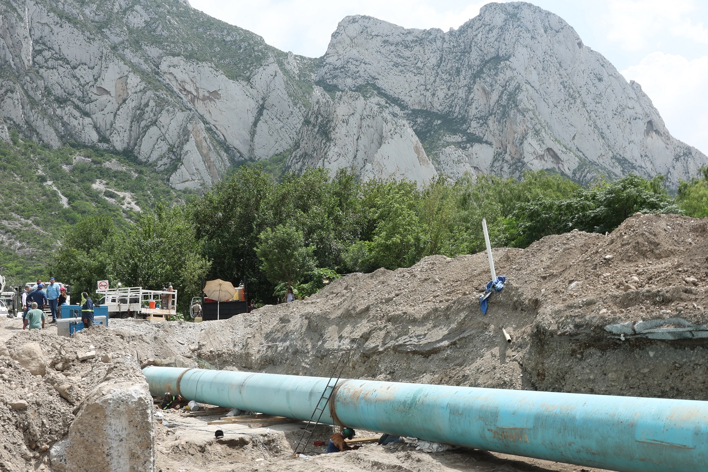 Monterrey, Nuevo León.- El Director General de Servicios de Agua y Drenaje de Monterrey, Juan Ignacio Barragán, informó que, se inició con las obras hidráulicas definitivas en la zona de la Huasteca para reforzar el suministro de agua a Santa Catarina y parte sur de García. Las cuales incluyen, la instalación de una tubería de 780 metros, la restauración de tuberías flotantes y explotadas, además de la rehabilitación de pozos de agua.