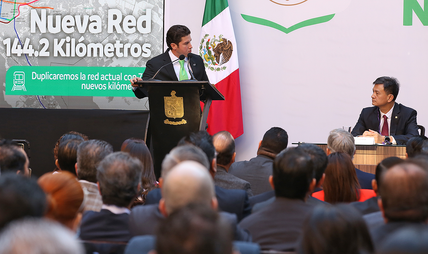 Así como director general del Sistema de Transporte Colectivo Metrorrey; Abraham Vargas Molina y el presidente del Congreso del Estado, Mauro Guerra Villarreal. También asistieron Mr. Ning Wenze, vicepresidente de la sede central de la empresa CRRC Corporation Limited y João Pedro Parreira, presidente y CEO de la empresa Mota-Engil Latinoamérica.