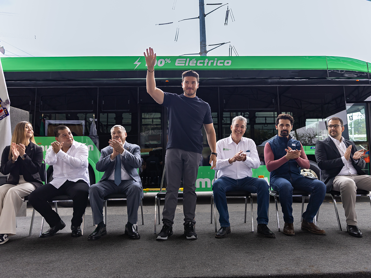 “Estos camiones verdes, 100 por ciento eléctricos, hechos en Nuevo León, los vamos a estar diversificando en toda la ciudad de Monterrey. Y el día de hoy llegamos ya a 420 que son aparte de los miles de camiones verdes que van a llegar para las rutas tradicionales”, subrayó García Sepúlveda.