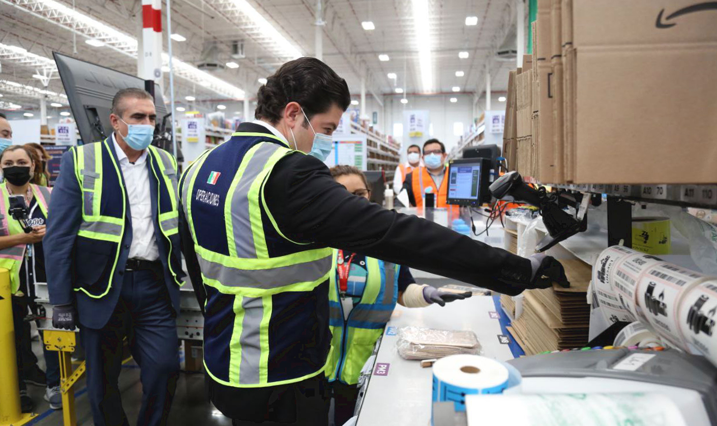 Tras recorrer junto con el Secretario de Economía, Iván Rivas y el alcalde de Apodaca, César Garza el Centro de Envío de Amazon ubicado en el municipio de Apodaca, el Mandatario estatal expresó que su Gobierno se destaca en inversión extranjera, salarios, generación de empleos y calidad de vida, entre otros indicadores.