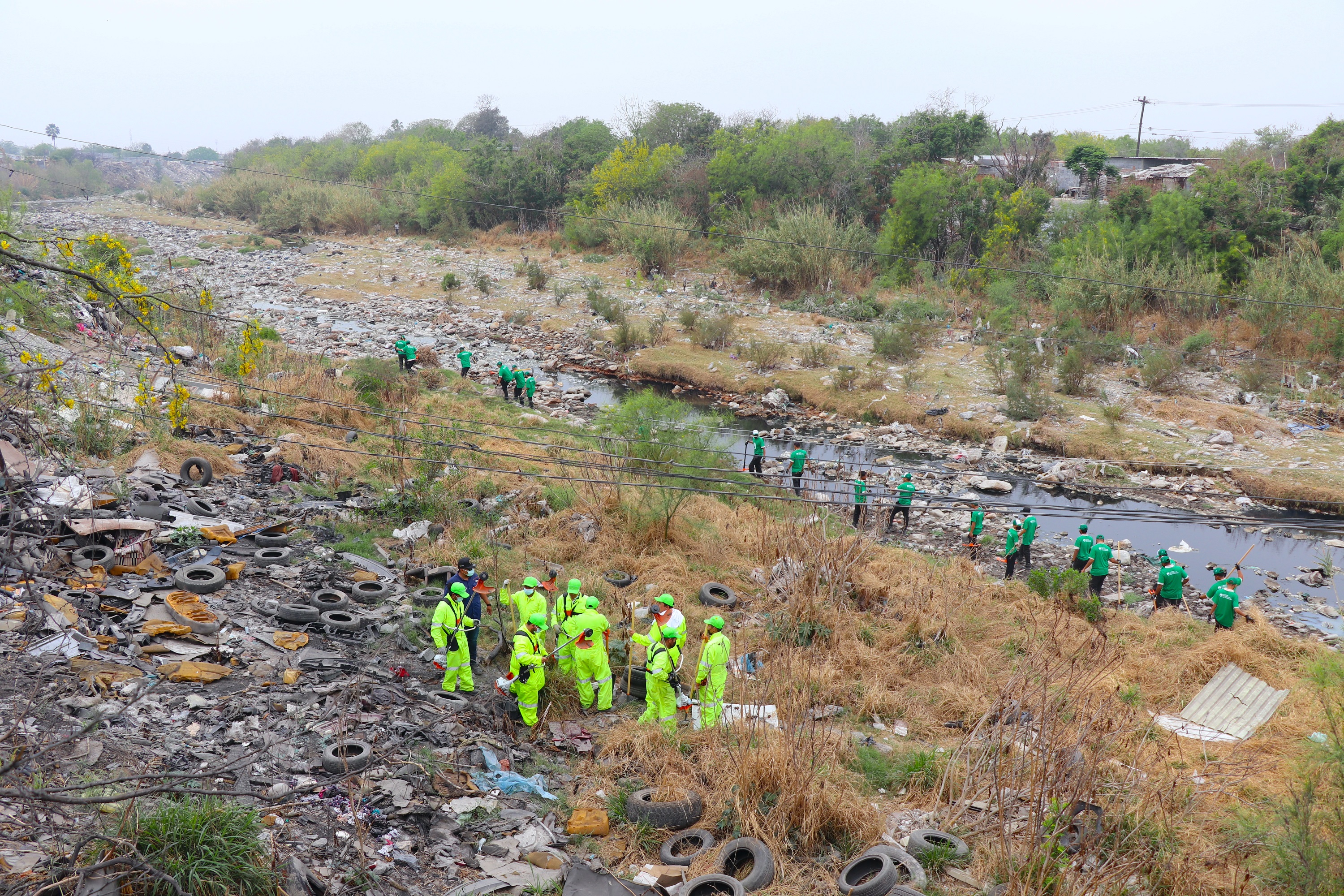 Con un total de 80 personas, 20 de ellos del programa de empleo temporal de la Secretaría del Trabajo, la Secretaría de Medio Ambiente inició los trabajos de limpieza del Río Pesquería y lotes baldíos en la colonia "La Alianza", que en días pasados sufrió los estragos de un incendio urbano.