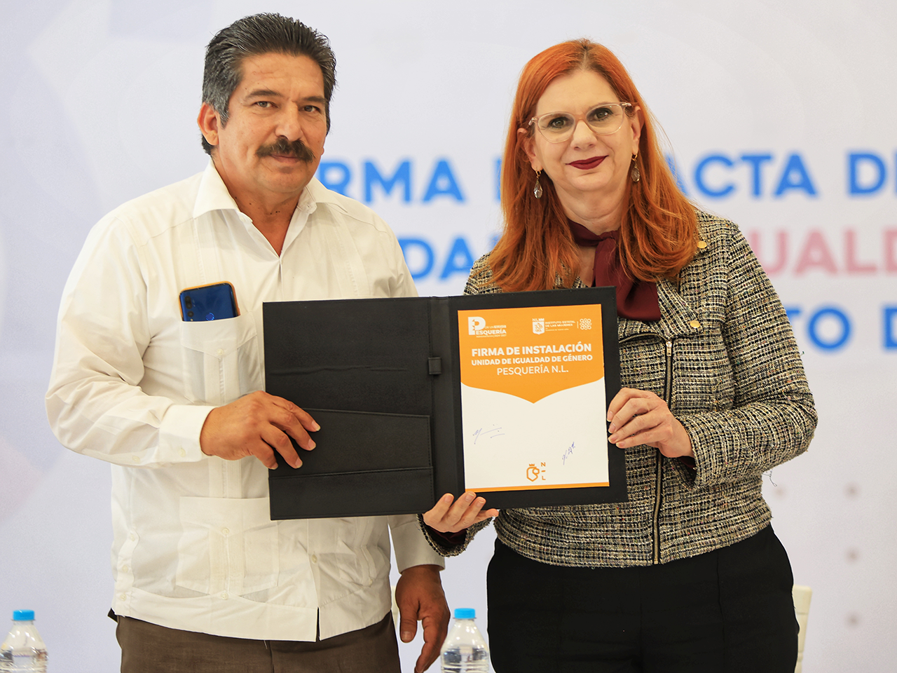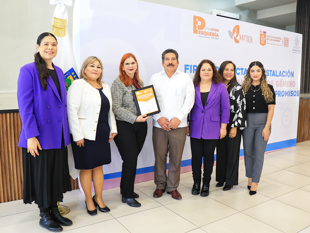 Pesquería, Nuevo León.- Con el objetivo de transversalizar e institucionalizar la perspectiva de género en la administración pública de Nuevo León, Miriam Hinojosa Dieck, Presidenta Ejecutiva del Instituto Estatal de las Mujeres y Francisco Esquivel Garza,  Alcalde del Municipio de Pesquería, instalaron la Unidad de Igualdad de Género (UIG) con la firma simbólica de oficialización y el reconocimiento de compromisos adquiridos.