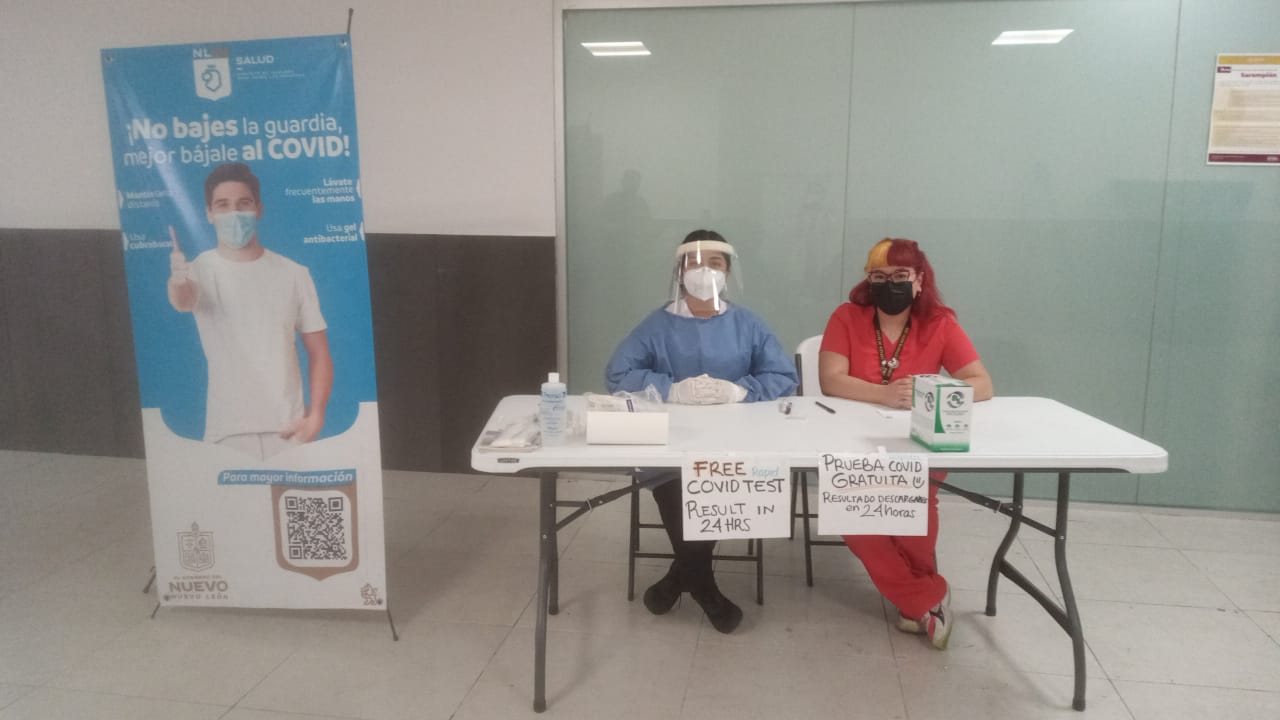 La Secretaría de Salud instaló módulos de pruebas Covid en el Aeropuerto Internacional de Monterrey, para monitorear la movilidad del virus en viajeros durante esta temporada vacacional de Semana Santa.