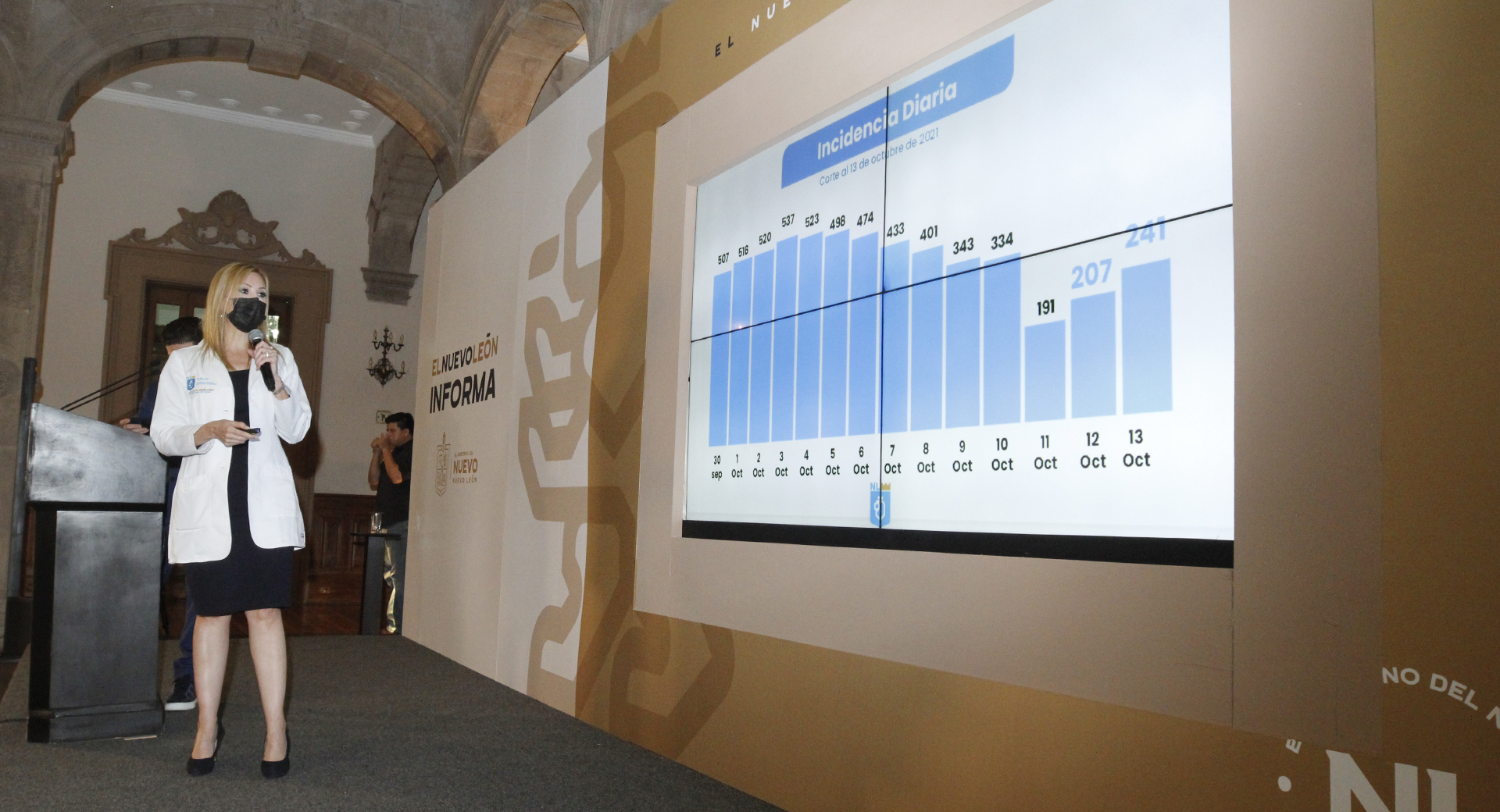 Durante la conferencia, se dieron a conocer las cifras de contagios y defunciones por Covid en Nuevo León.