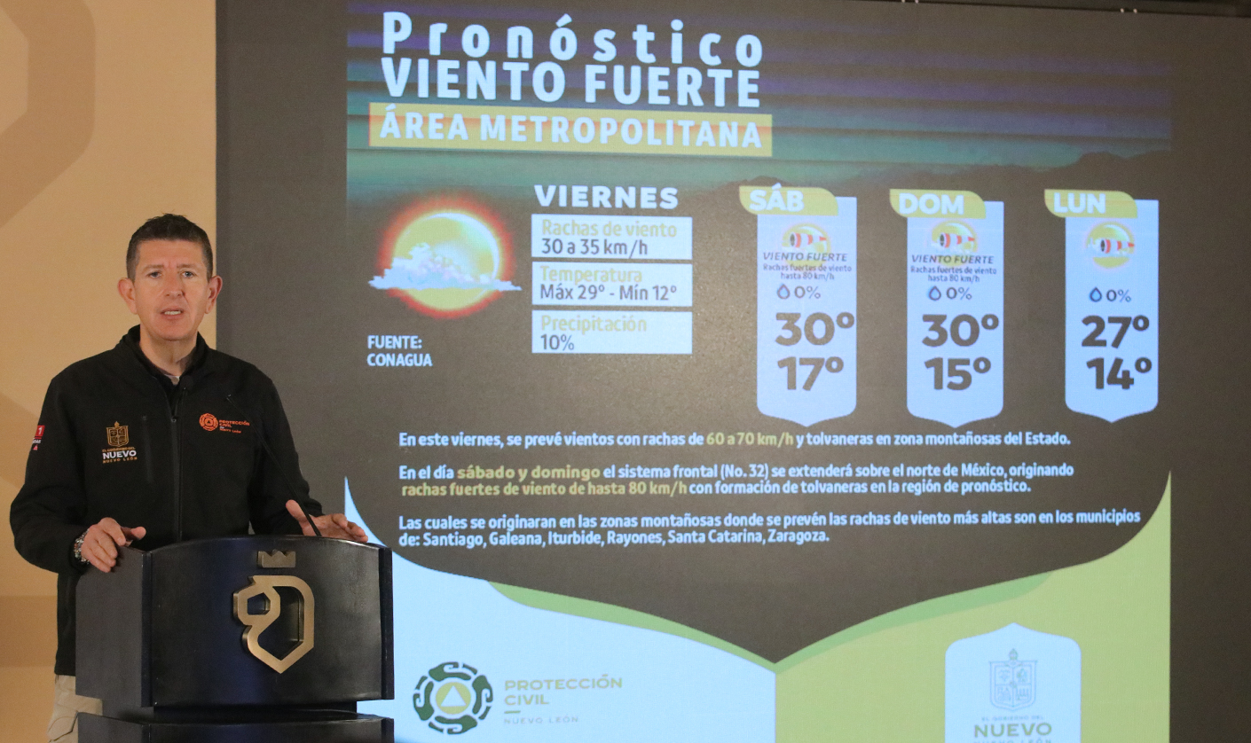 “Vamos a poner a especial atención donde sabemos que se levanta polvo este sábado y este domingo y a partir del día de hoy, concreteras asfalteras, sitios donde normalmente se genera polvo cuando hay vientos, obviamente las pedreras pedimos también ahí que estén muy atentos para que no se genere polvo que no contribuya al polvo que va a venir de fuera del área metropolitana de Monterrey”.