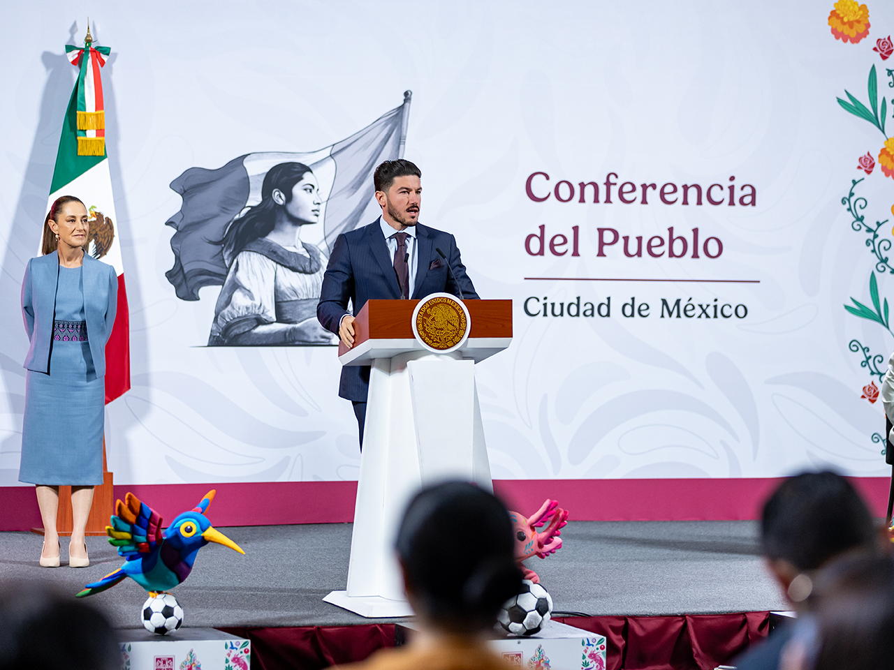 En la conferencia matutina estuvieron también la Coordinadora de los trabajos para el Mundial 2026, Gabriela Cuevas; la Jefa de Gobierno de la Ciudad de México, Clara Brugada; y el Gobernador de Jalisco, Pablo Lemus.