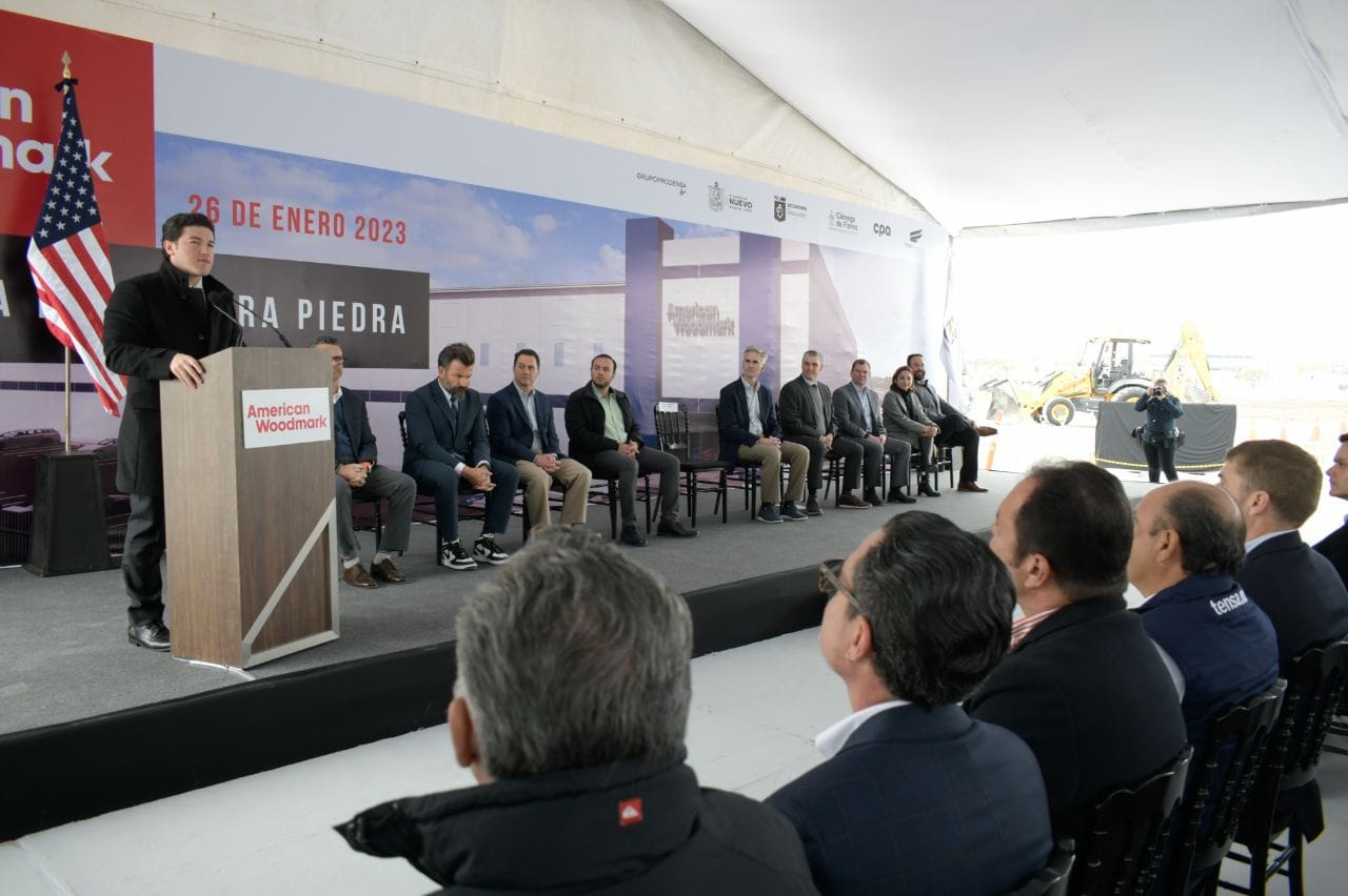 Ciénega de Flores, Nuevo León.- El Gobernador Samuel Alejandro García Sepúlveda encabezó la ceremonia de colocación de la primera piedra para la construcción de la primera fábrica en Nuevo León de American Woodmark, empresa de capital estadounidense, que tendrá una inversión de 45 millones de dólares.