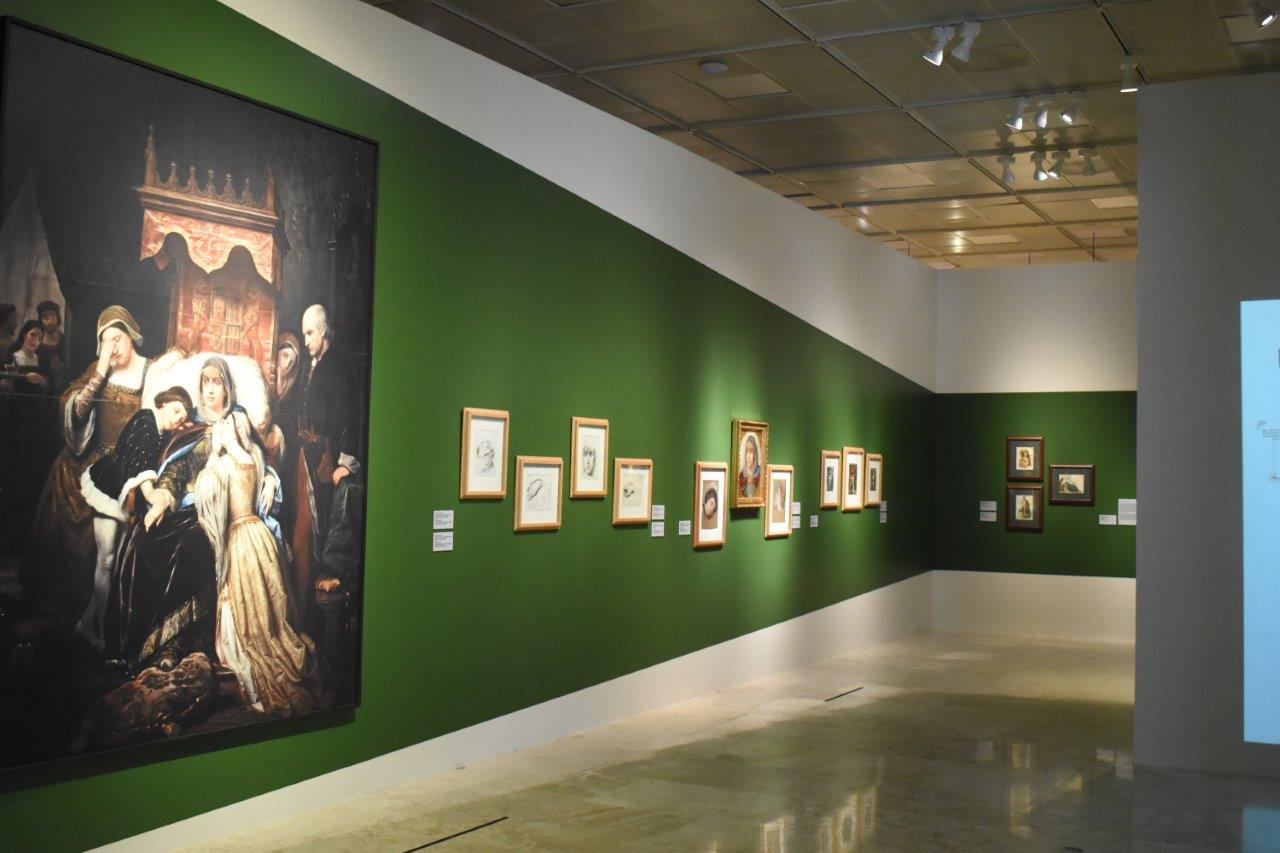 En este espacio se aprecia una ambientación inspirada en las fotografías de los salones de pintura y escultura de la Academia de finales del siglo XIX.