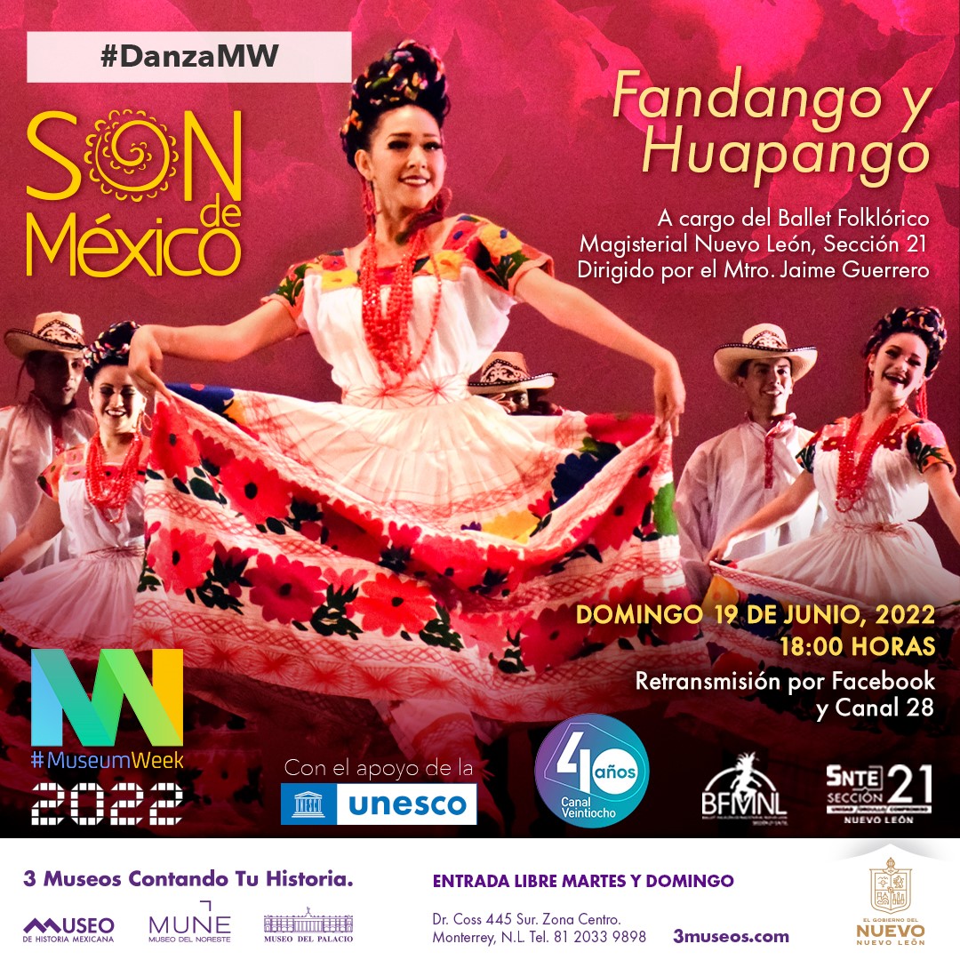 Este día el hashtag para compartir está vinculado baile y en México las manifestaciones dancísticas representan la gran multiculturalidad que existe, por ello se difundirá la presentación de “Son de México Programa: Fandango y Huapango” a cargo del Ballet Folklórico Magisterial Nuevo León, dirigido por Jaime Guerrero, un espectáculo que presenta el fandango de Campeche y Veracruz, marcado por sus raíces africanas y españolas que se distinguen por su clamor festivo y el huapango hidalguense que se expresa con maestría a través de la música, el verso y su danza cadenciosa.