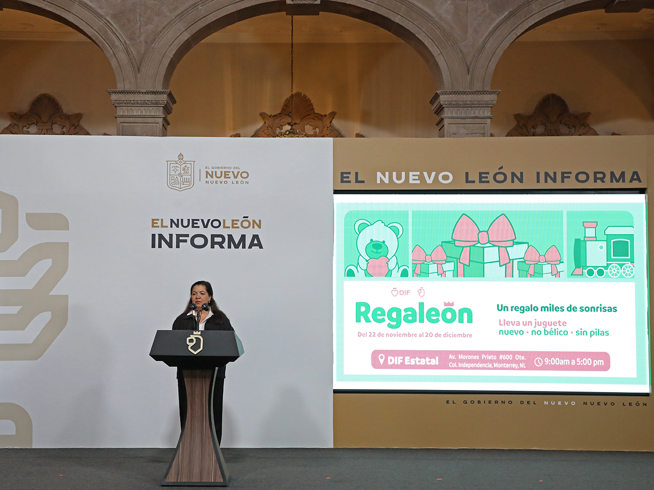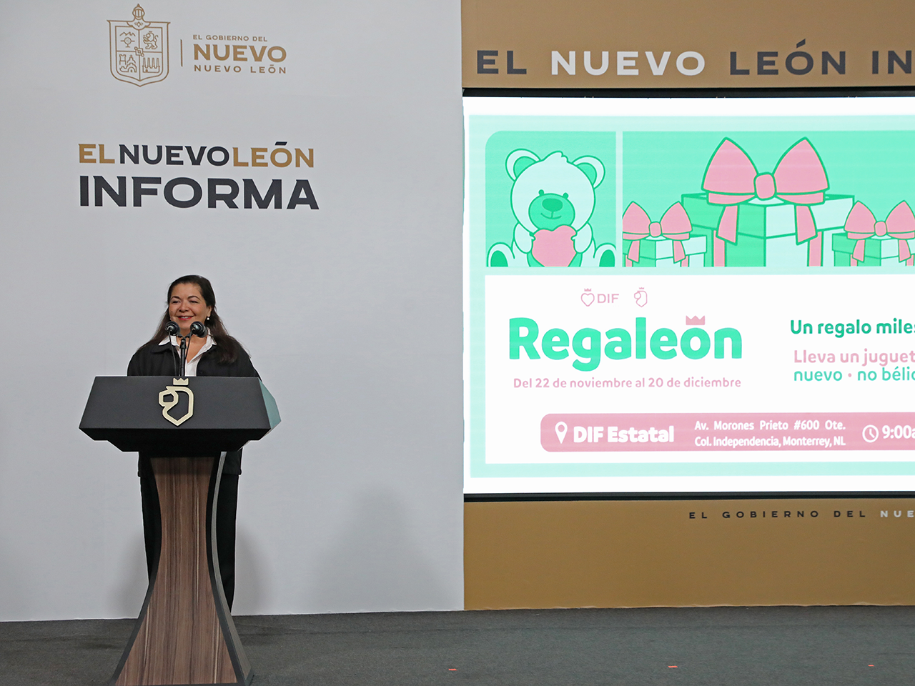Monterrey, Nuevo León.- Para beneficiar a las niñas y niños de Nuevo León que viven en comunidades alejadas y que por diferentes circunstancias no reciben un juguete en Navidad, el DIF estatal invitó a la comunidad a sumarse a la campaña Regaleón 2024 que estará vigente del 22 de noviembre al 20 de diciembre de este año.
