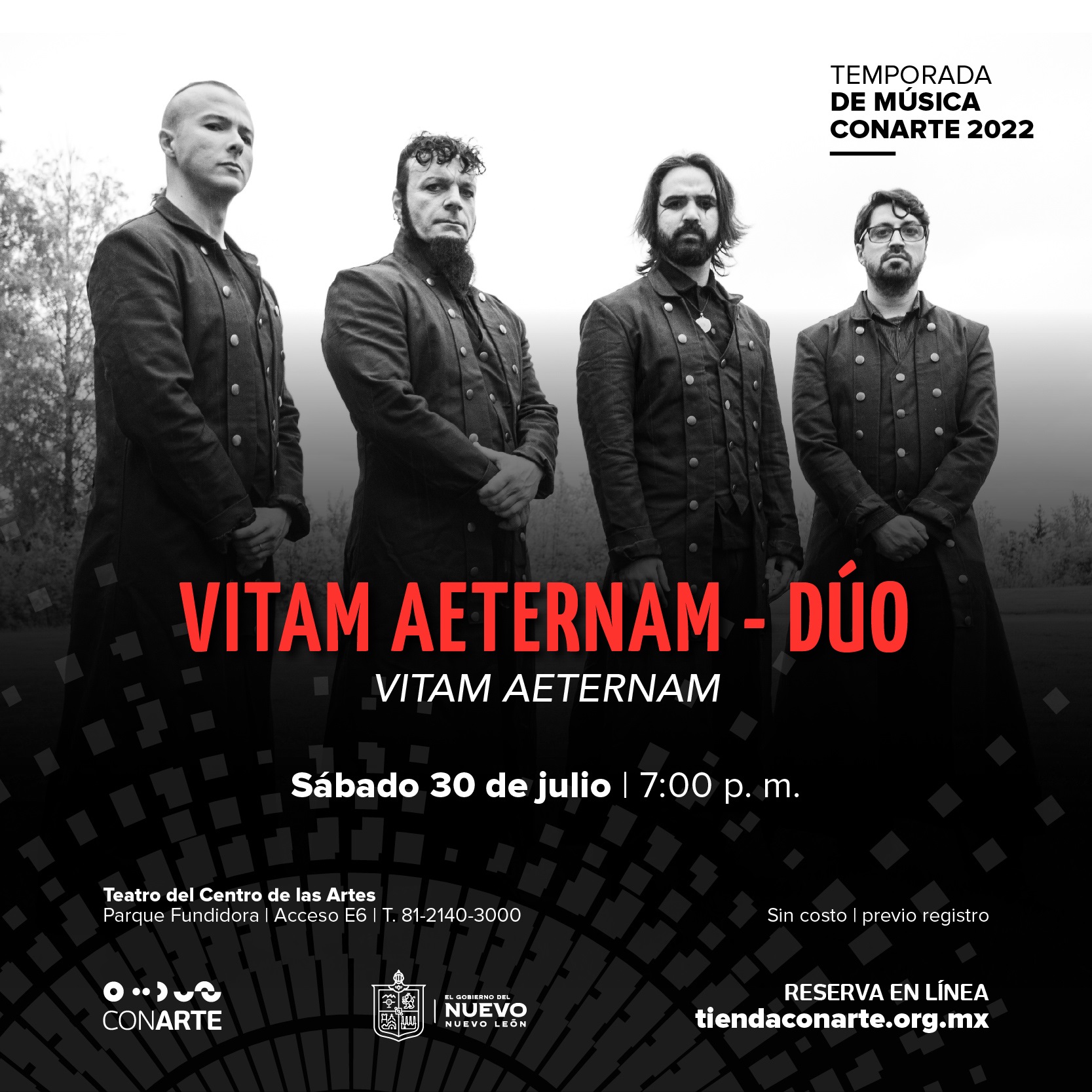 “Tenemos el agrado de anunciar la presentación de la agrupación Vitam Aeternam, proyecto originando por el músico regiomontano Raúl Guerra Jiménez, que tiene un antecedente de trabajar proyectos muy creativos en torno a la fusión de música, rock progresivo, influencias de música electrónica experimental, cinematográfica, incluso repertorio clásico y art rock”, manifestó el maestro Oscar Arévalo, Coordinador de Música y Teatro del Centro de las Artes.