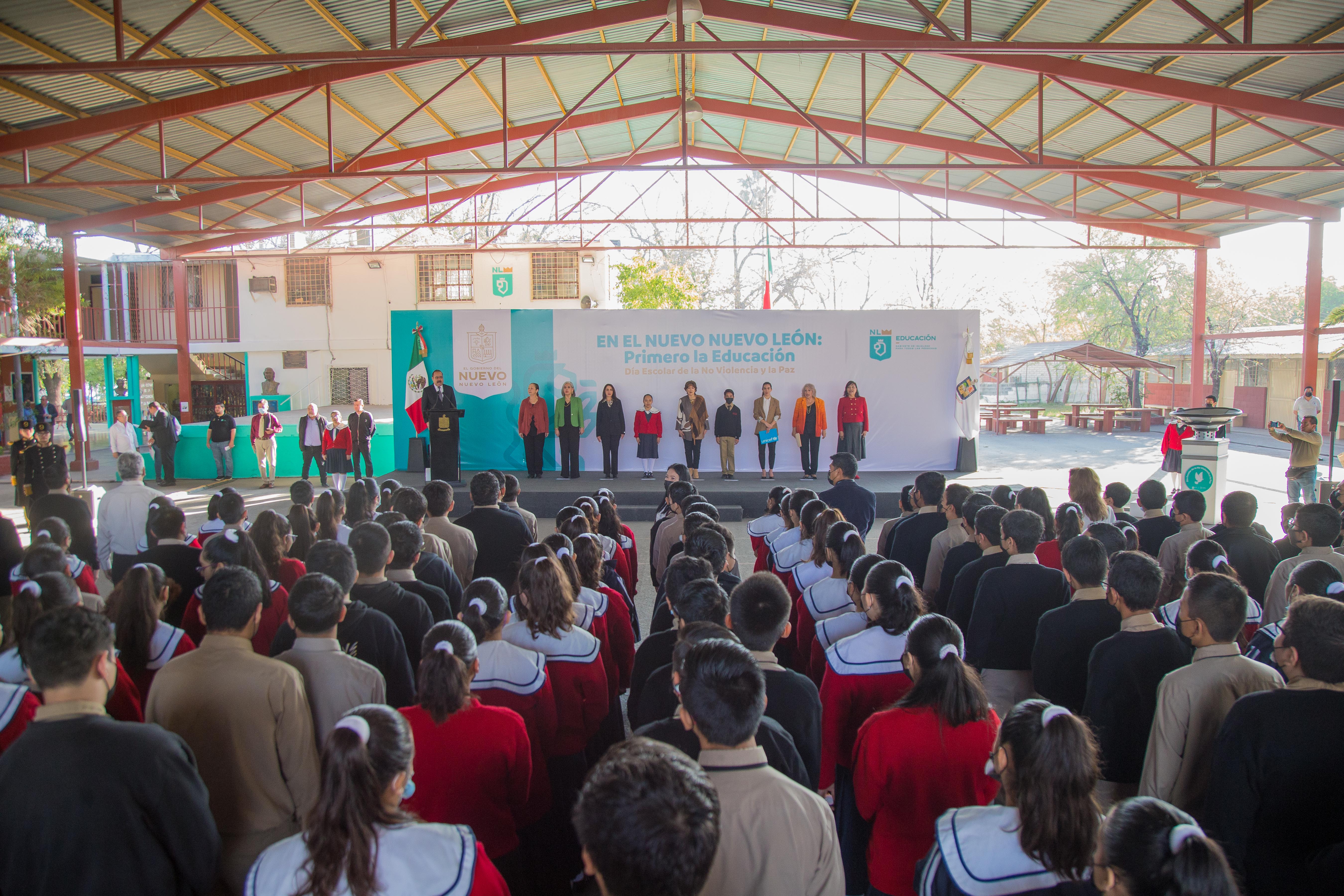 En el marco del “Día Escolar de la No Violencia y la Paz”, autoridades de Nuevo León exhortaron a alumnos, padres de familia, docentes y sociedad civil a hacer un frente común para prevenir y evitar la violencia en los planteles.
