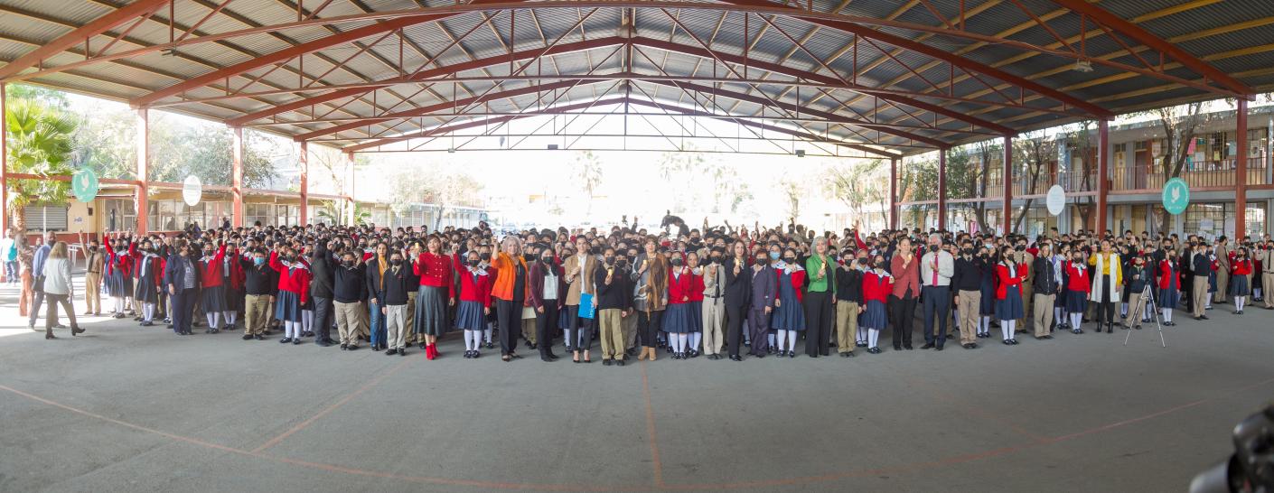 “En las últimas semanas hemos sido testigos de incidencias escolares que ponen de manifiesto que hay mucho trabajo por hacer para que verdaderamente las escuelas sean esos lugares más seguros que hemos sido a través de la historia. Lugares más seguros para ustedes jóvenes, hombres y mujeres, que la pandemia ha dejado una estela de problemas psicosociales que se manifiestan de diversas maneras, muchas de ellas caracterizadas por una violencia soterrada, implícita que a veces brota contra sí mismo o contra otros compañeros o compañeras aceptamos el reto de poner en el centro precisamente ese ambiente que mencionaba su directora, el ambiente de convivencia de paz y de armonía”, expresó en su mensaje.
