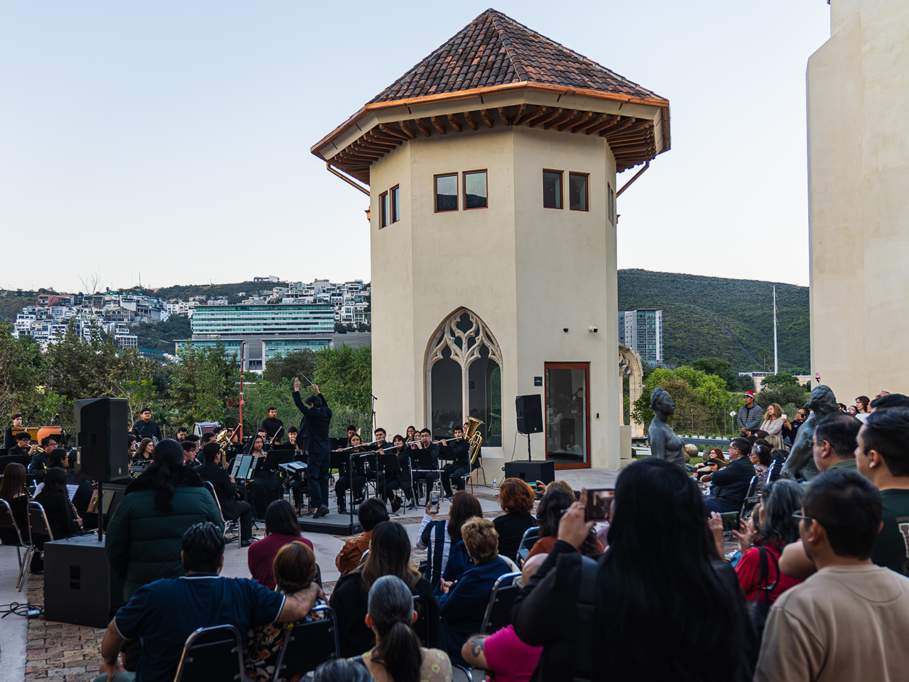 Monterrey, Nuevo León.- Iniciando una nueva tradición, el museo La Milarca brindó un cálido concierto navideño recibiendo en sus instalaciones a la Orquesta Sinfónica y la Banda de la Escuela Superior de Música y Danza de Monterrey.