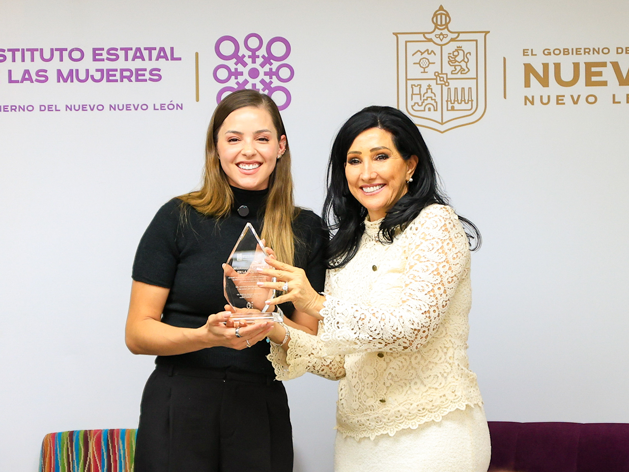 Al terminar el evento Mariana Rodríguez Cantú recibió un reconocimiento por parte de la Presidenta Ejecutiva del Instituto Estatal de las Mujeres, Patricia Salazar.