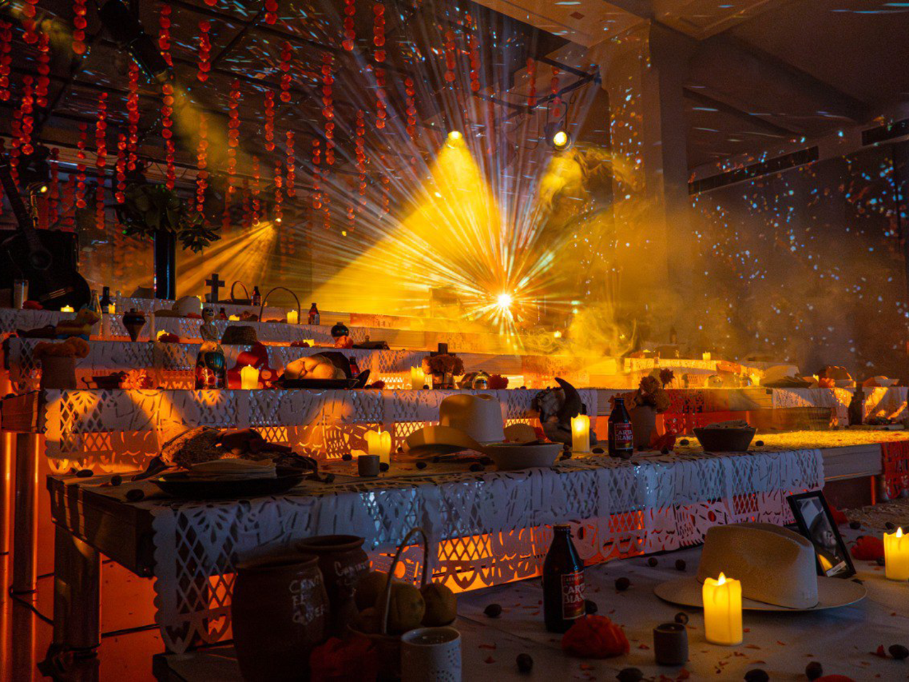 En una de las salas de LABNL se evocan a los difuntos que nos han antecedido y se rinden homenaje a las tradiciones del estado, en una instalación que abrió sus puertas el pasado jueves 31 y que estará abierta gratuitamente para visitantes hasta este sábado 2 de noviembre de 11 de la mañana a 6:30 pm.