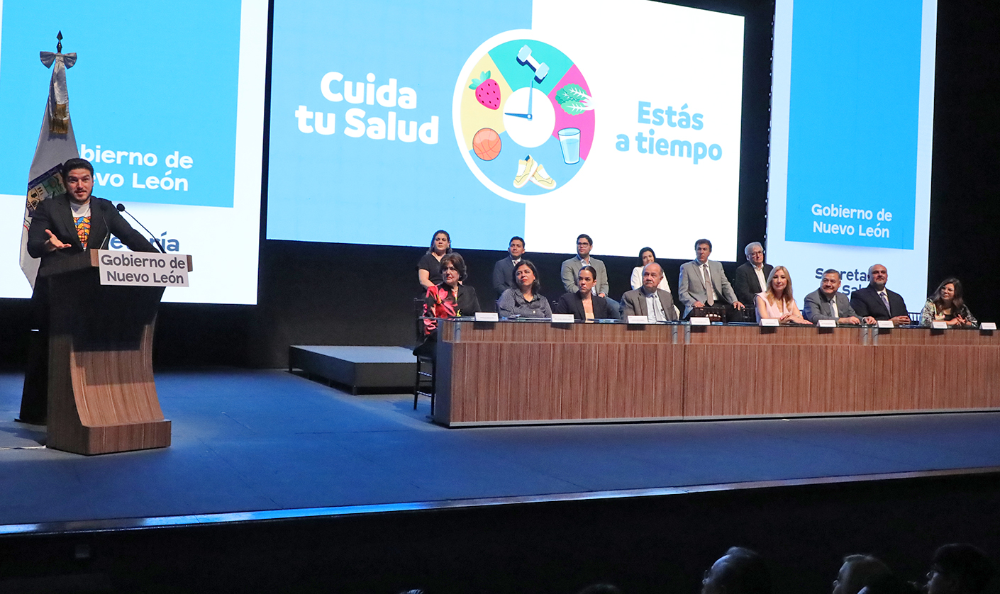 Monterrey, Nuevo León.- Para enfrentar la problemática de sobrepeso y la obesidad, la Secretaría de Salud de Nuevo León lanzó hoy la estrategia Cuida Tu Salud, Estás a Tiempo, con la que busca reducir los índices existentes en el estado, mediante intervenciones para prevenir y ayudar a la población de todas las edades.