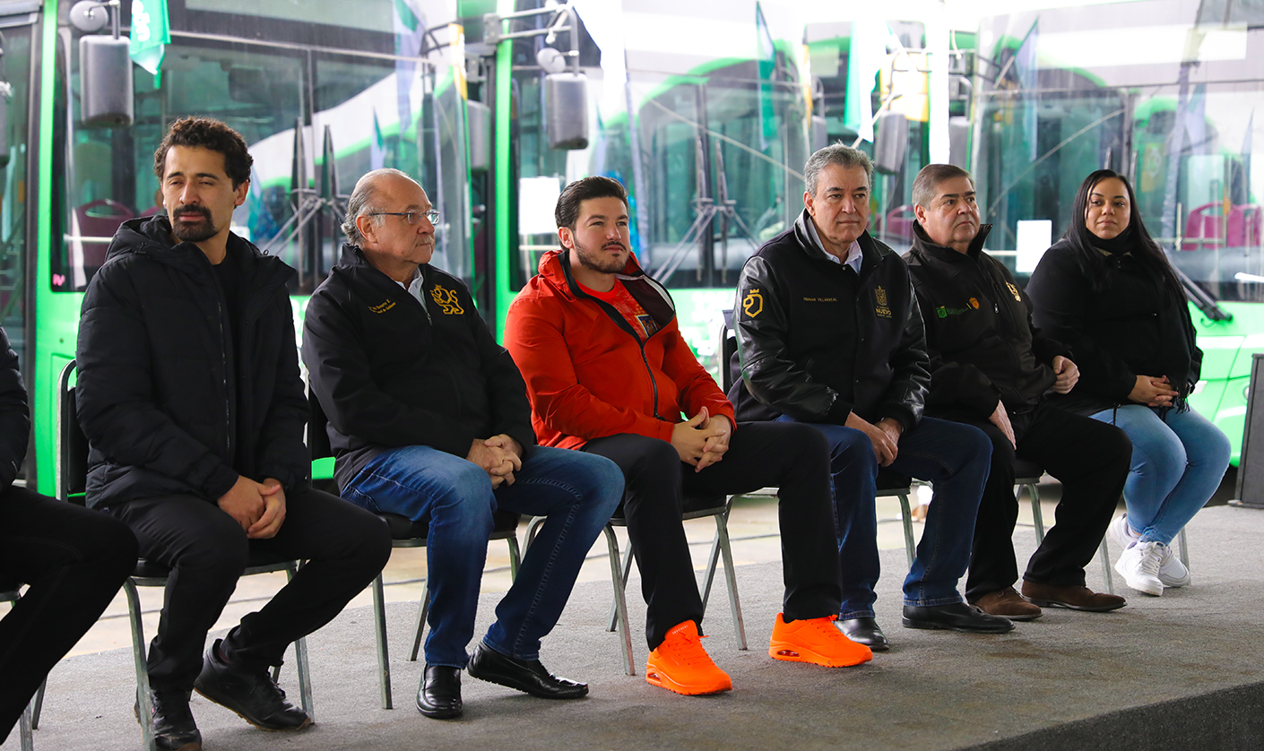 Durante el evento el Gobernador Samuel García entregó 85 nuevas unidades de transporte público que darán servicio a cinco rutas en los municipios de Monterrey, San Nicolás de los Garza, García, Juárez y Apodaca.