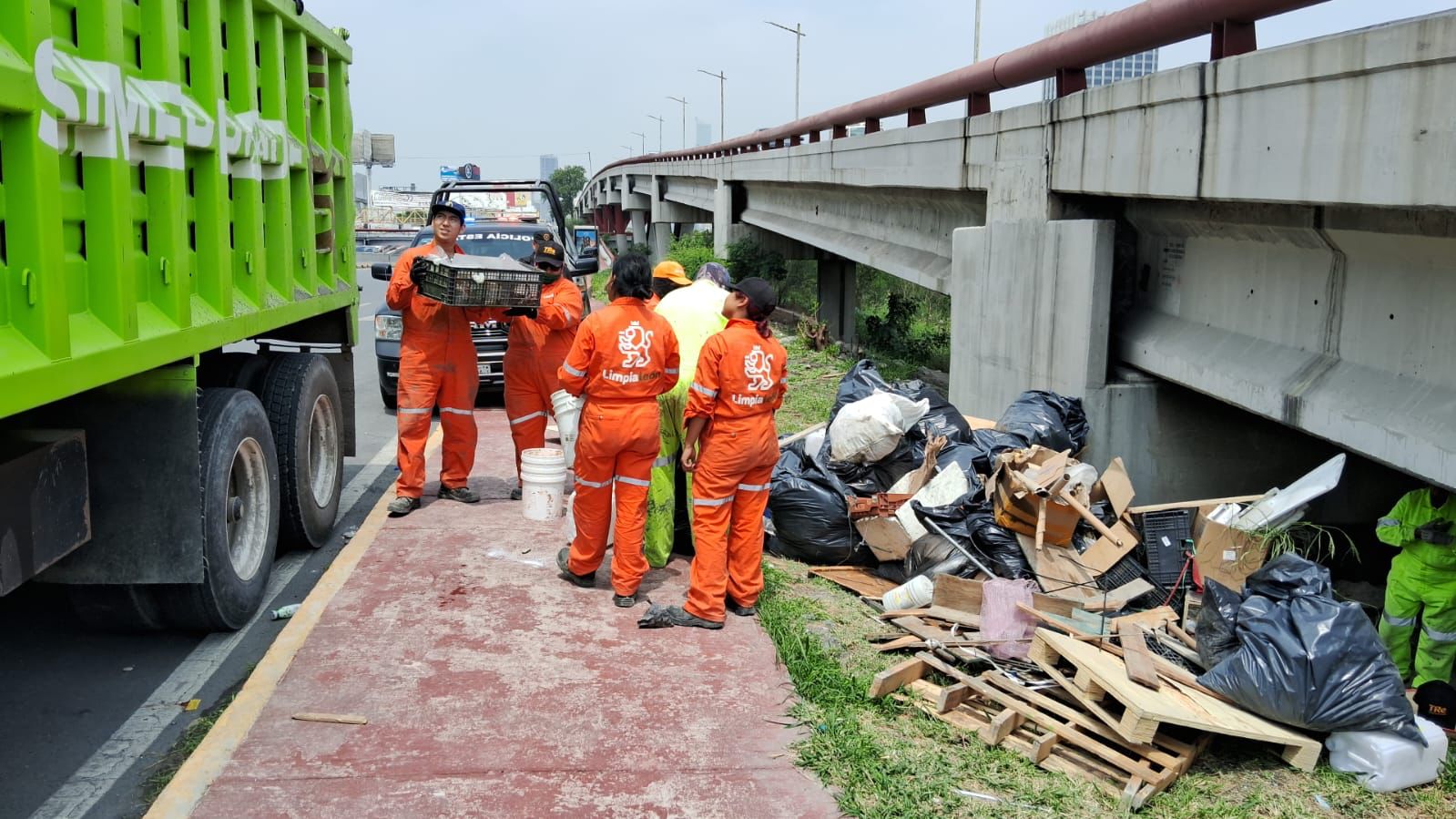 En los trabajos para despejar el predio, se identificó el lugar como el escondite de más de 20 personas en situación de calle quienes acumulaban el equivalente a 33 toneladas de basura, las cuales fueron retiradas con la operación de cinco camiones de 14 metros cúbicos de Simeprode y tres camiones de Servicios Públicos del Municipio.
