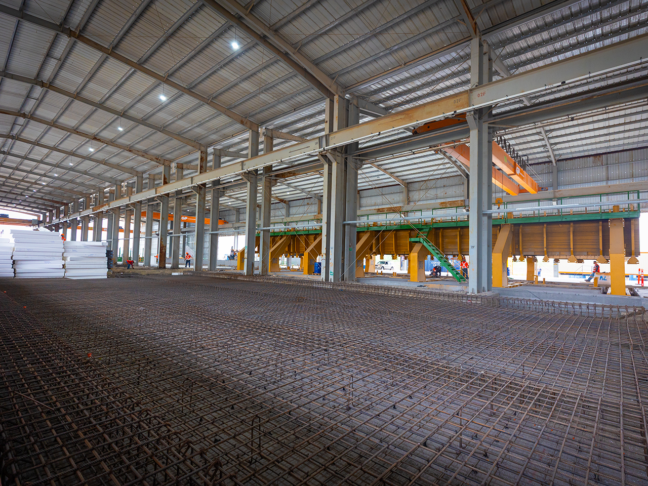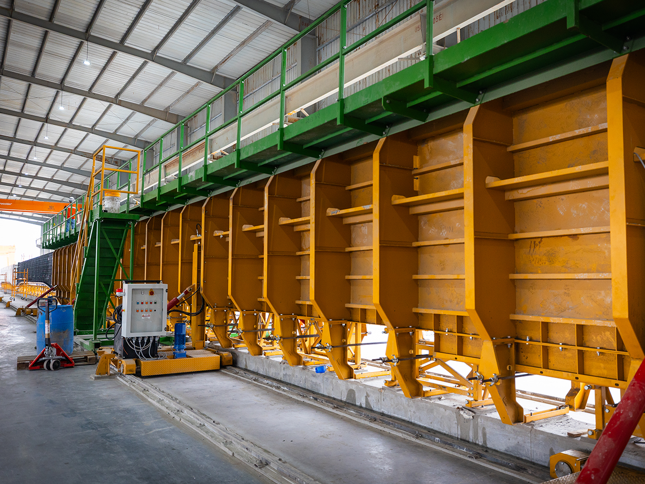 Ahí se llevan a cabo las actividades de fabricación de trabes tangentes y curvas de concreto con moldes de la más alta calidad importados de Italia, lo cual representa una innovación pionera en México.