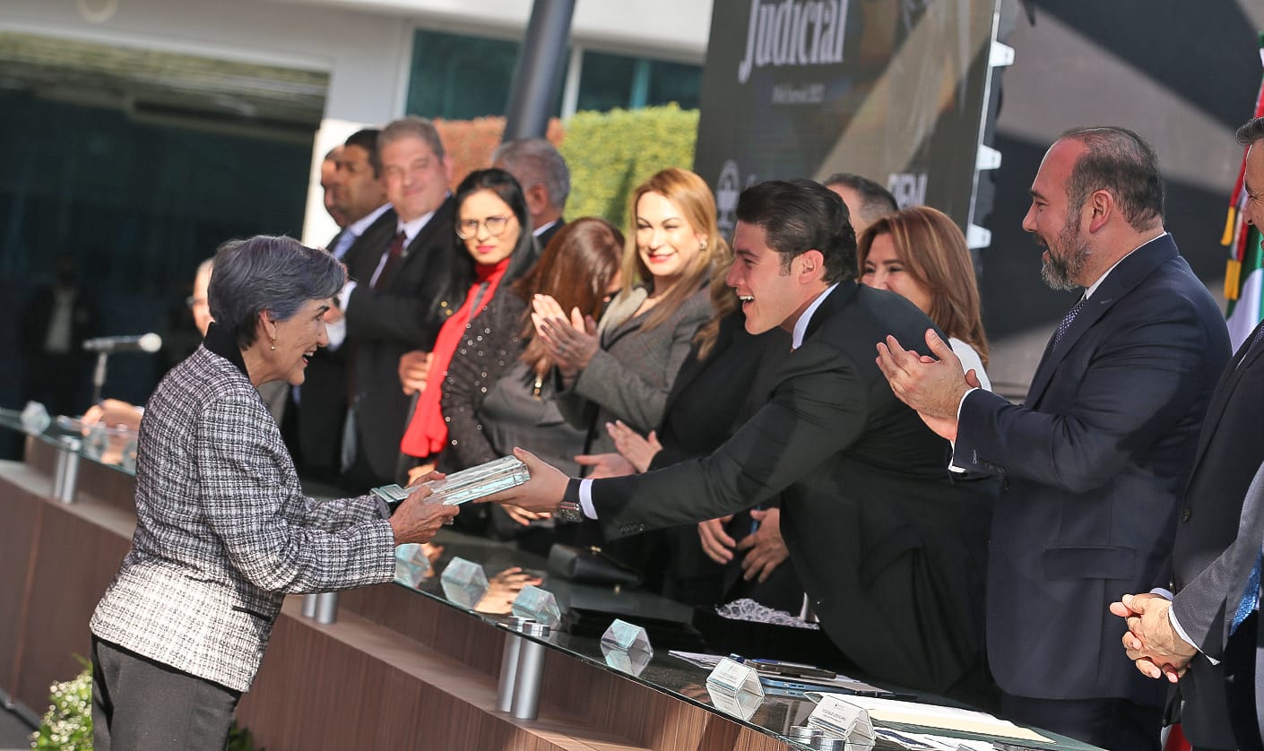 Durante el evento el Gobernador Samuel García entregó reconocimientos por su trayectoria a Leonor Guadalupe Zavala Pompa, Directora del Centro Estatal de Convivencia Familiar del Poder Judicial; y a Graciela Buchanan Ortega, ex Magistrada del Poder Judicial y actual Secretaria de las Mujeres.