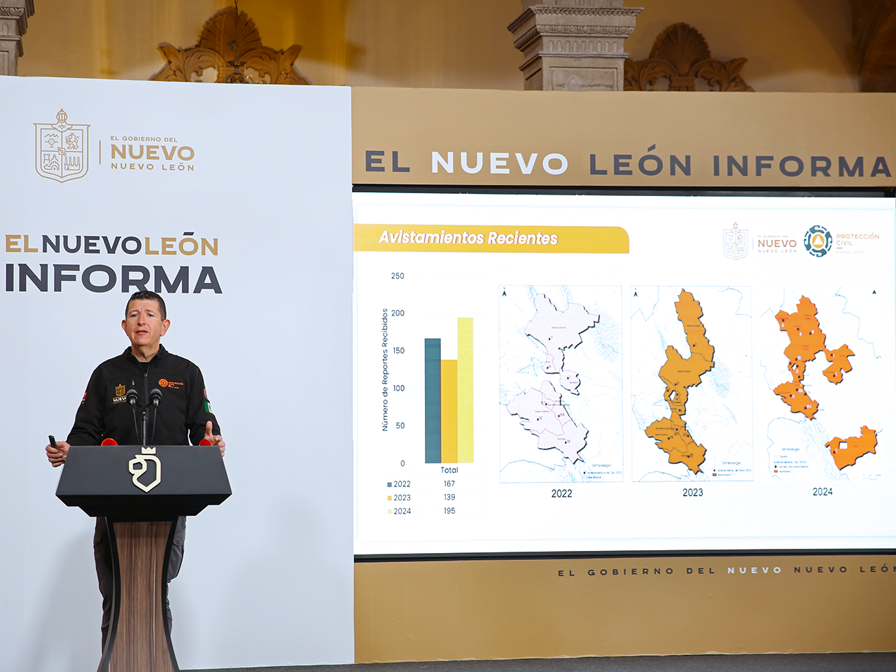En el Nuevo León Informa el director de PC de Nuevo León, Erik Cavazos Cavazos dijo que en lo que va del año se tiene el registro de 196 avistamientos de esta clase de animal en la zona sur de San Pedro y Monterrey, incluso en el centro de Cerralvo, Bustamante, Santiago y Villaldama.