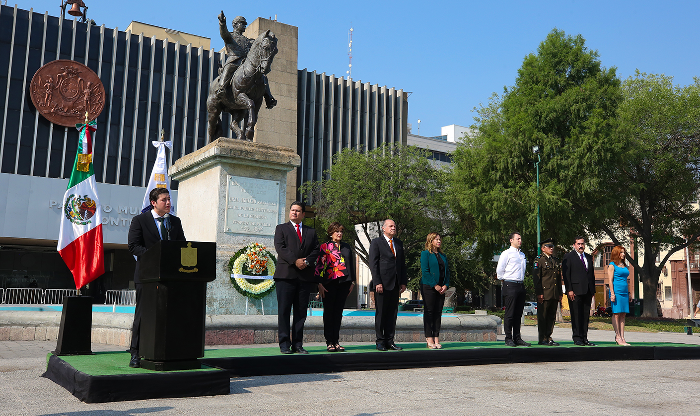 Asistieron a la ceremonia que se realizó en el monumento al General Zaragoza en el Palacio municipal de Monterrey, Javier Navarro, Secretario General de Gobierno; Sofíaleticia Morales Garza, Secretaria de Educación; Luis Donaldo Colosio Riojas, Alcalde de Monterrey e Ivonne Álvarez García, Presidenta del Congreso local.