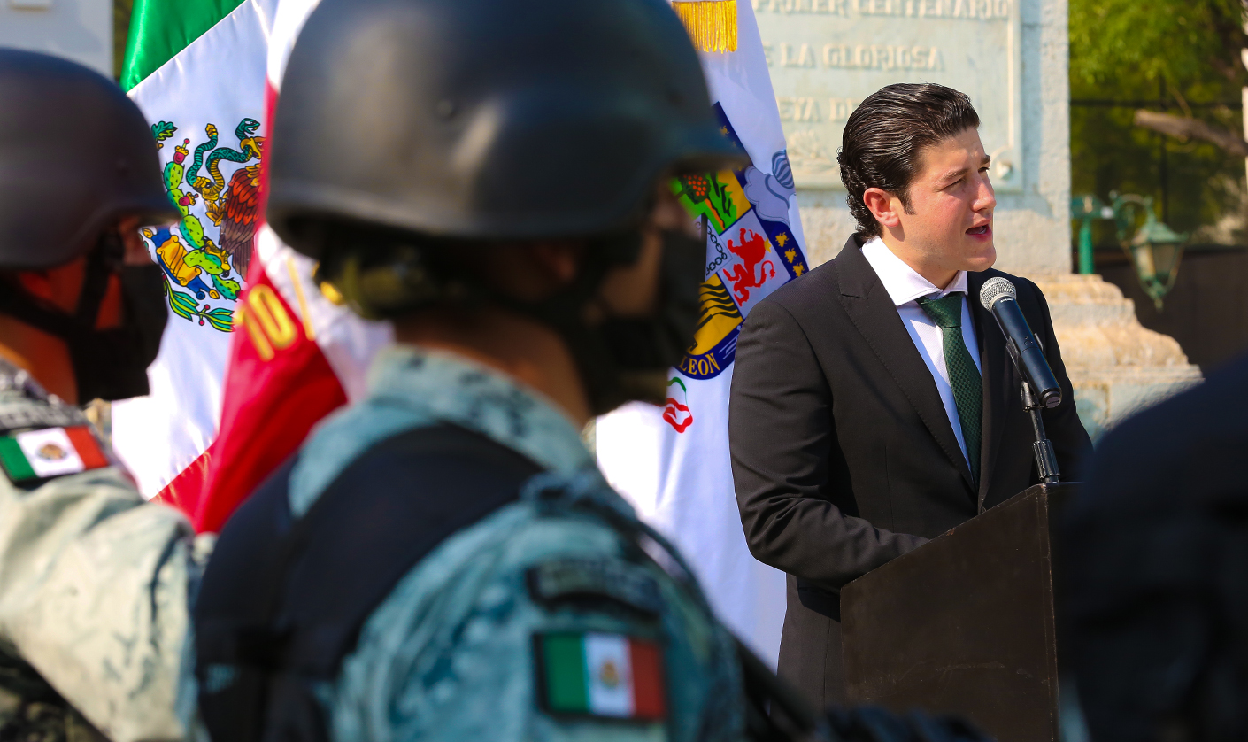 El Gobernador Samuel Alejandro García Sepúlveda también participó en la "Ceremonia de Protesta de Bandera al Personal del Servicio Militar Nacional (SMN) Clase 2003, Remisos y Mujeres Voluntarias".