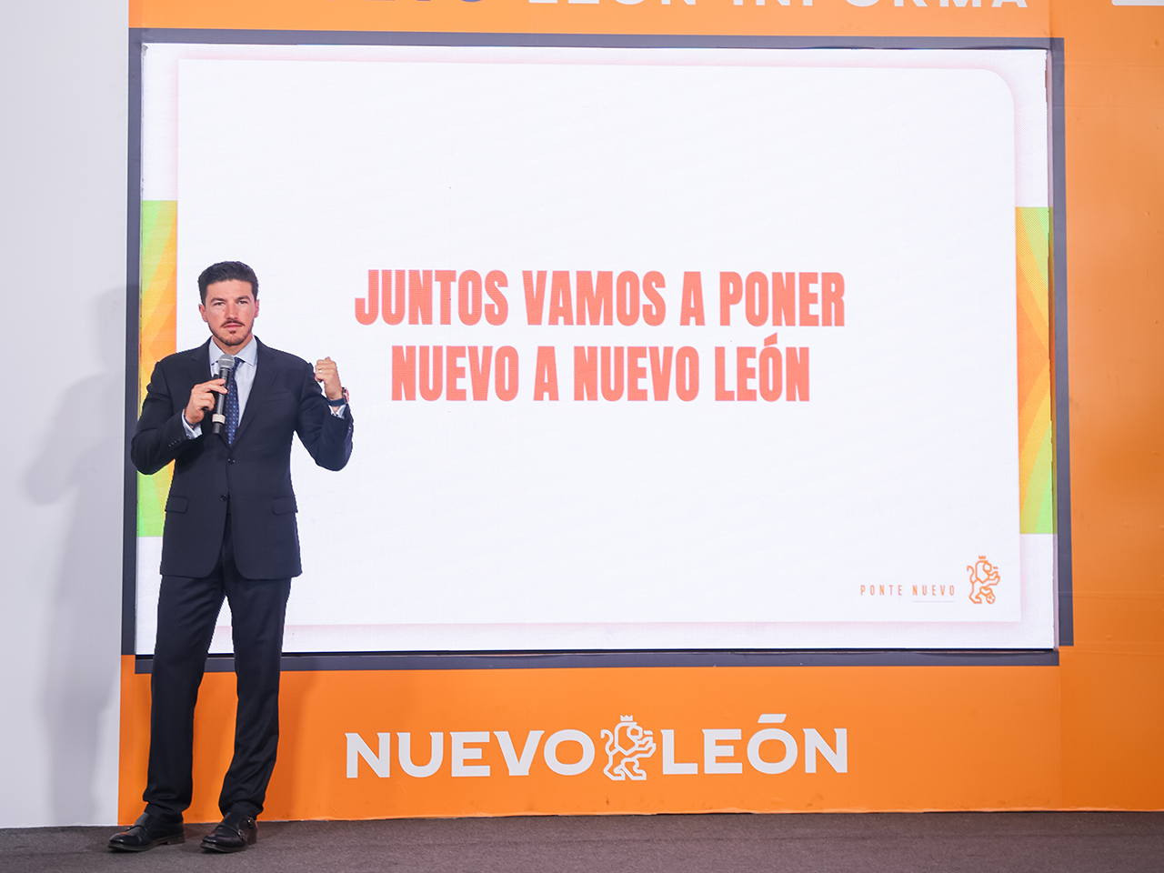 Monterrey, Nuevo León.- A 300 días de que inicié en el Estado el primer juego Mundial de Futbol 2026, el Gobernador del Estado, Samuel Alejandro García Sepúlveda presentó la iniciativa Ponte Nuevo, Ponte Mundial que tiene por objeto la suma de acciones de autoridad, sociedad civil y las y los neoloneses para presentar la mejor versión de Nuevo León antes, durante y después de la justa internacional.