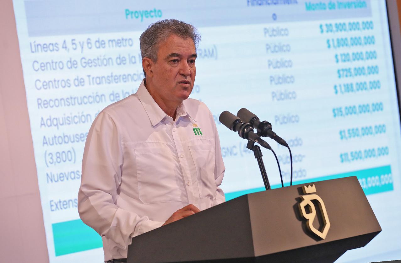 “Esta estrategia implica inversión comprometida en transporte colectivo, esta es la inversión que se ha invertido y se piensa invertir en los 6 años de la administración actual, $62 mil 783 millones de pesos, esos son temas de transporte masivo, camiones, metro y sincronización, todo lo que tiene que ver con apoyo el transporte masivo, estos 62 mil millones son 6 veces más que toda la inversión en obra pública realizada en la administración anterior”, señaló el Secretario de Movilidad, Hernán Villarreal.