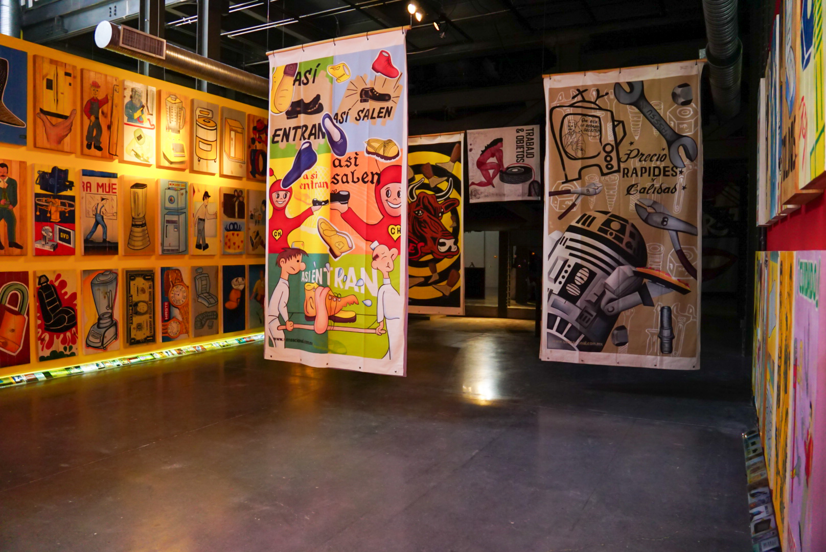 La exposición encierra el intenso colorido a través una colección de diversos soportes como rótulos, videos, carteles y productos populares llenas de humor y con una excelente solución gráfica, lo que la convierte en una exhibición imperdible.
