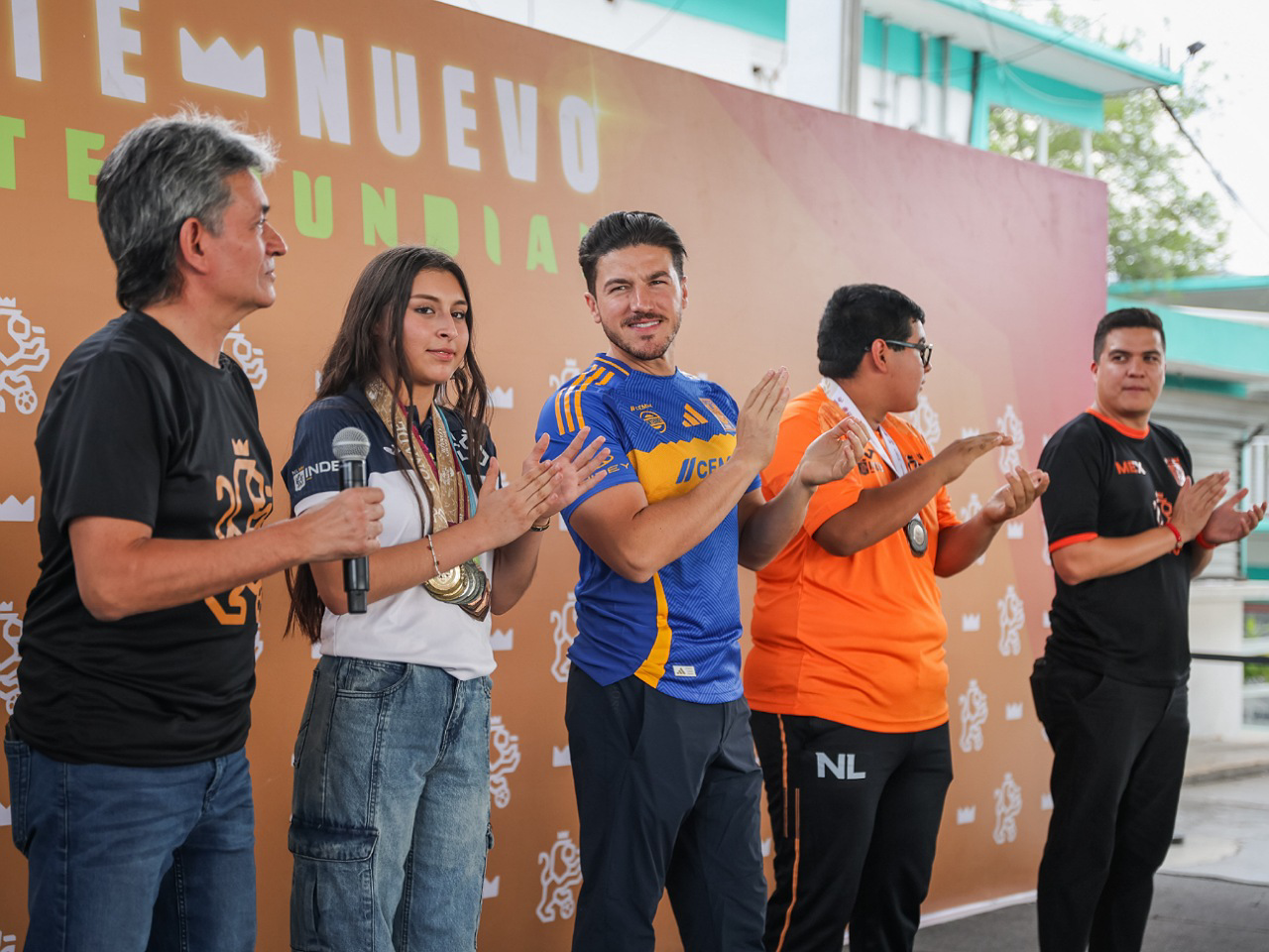 Monterrey, Nuevo León.- En el marco de la estrategia “ponte Nuevo, Ponte Mundial” rumbo a la Copa Mundial 2026, el Gobernador Samuel Alejandro García Sepúlveda, funcionarios estatales, alumnos y maestros “estrenaron” una cancha rehabilitada en la Escuela Secundaria 41 “José T. Puente”, de la Colonia Santa Cecilia, en Monterrey.