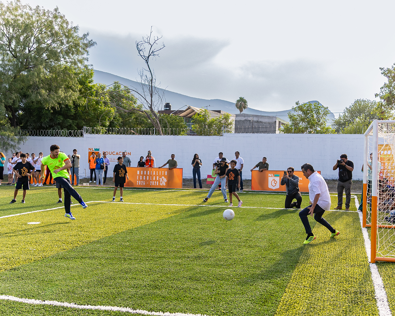 En el marco de este programa que busca promover el desarrollo físico, emocional y social de los estudiantes mediante la tradicional “cascarita” de futbol, el mandatario, alumnos, mentores y funcionarios participaron en esta fiesta educativa-deportiva.