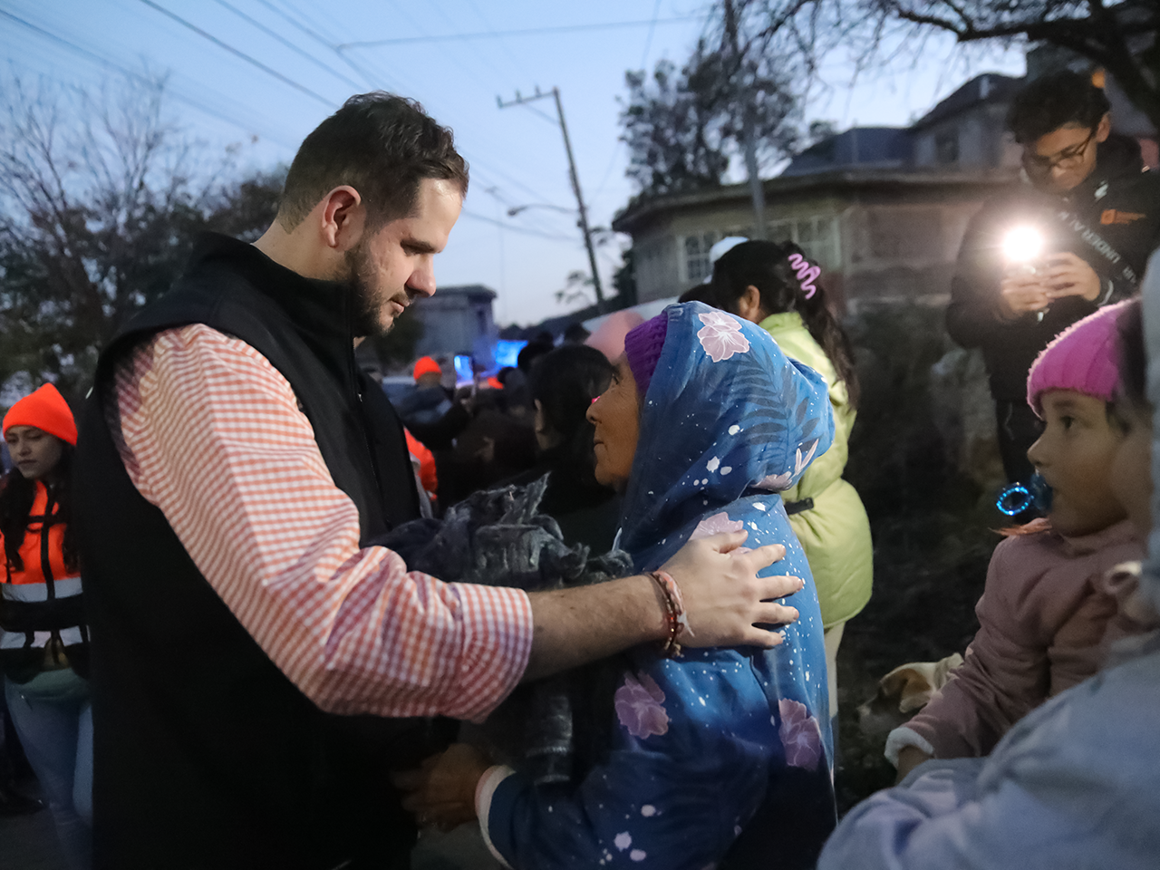 Además de entregar cobijas y bebidas calientes, Daniel Acosta aprovechó para escuchar de primera mano las necesidades de la gente que vive en las faldas del Cerro de la Silla.