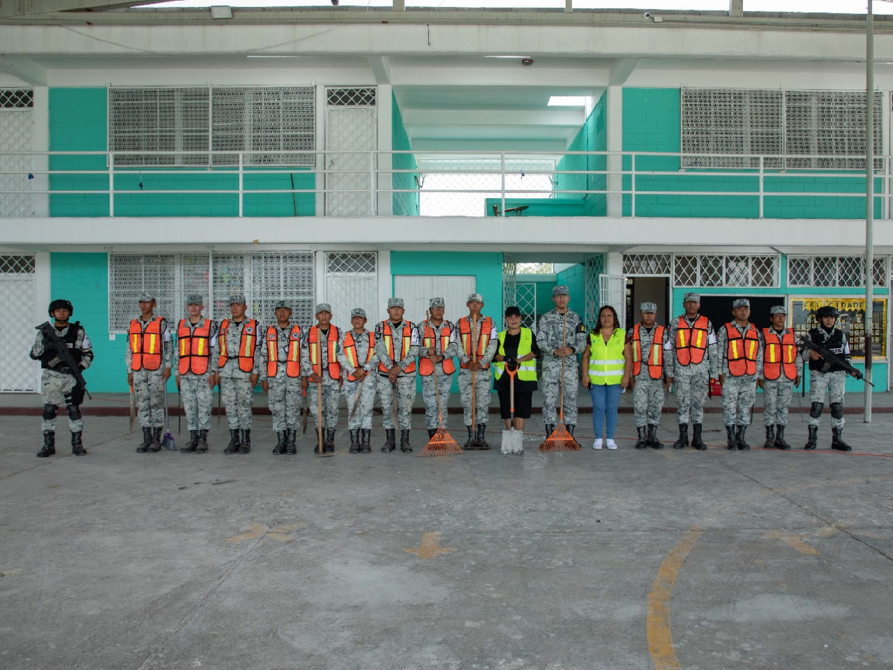 La macro brigada forma parte de la alianza “la Guardia Nacional de Nuevo León por la educación”, que se sumó a las Brigadas Escuelas Dignas y Seguras organizadas por la Secretaría de Educación durante este periodo vacacional.