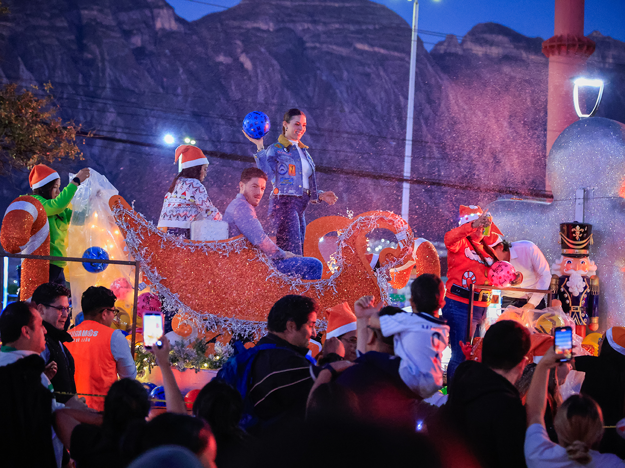 Santa Catarina, Nuevo León.- El Gobernador del Estado, Samuel Alejandro García Sepúlveda y Mariana Rodríguez Cantú, titular de Amar a Nuevo León, llevaron el espíritu navideño al Municipio de Santa Catarina con la realización del Desfile de Navidad 2025.