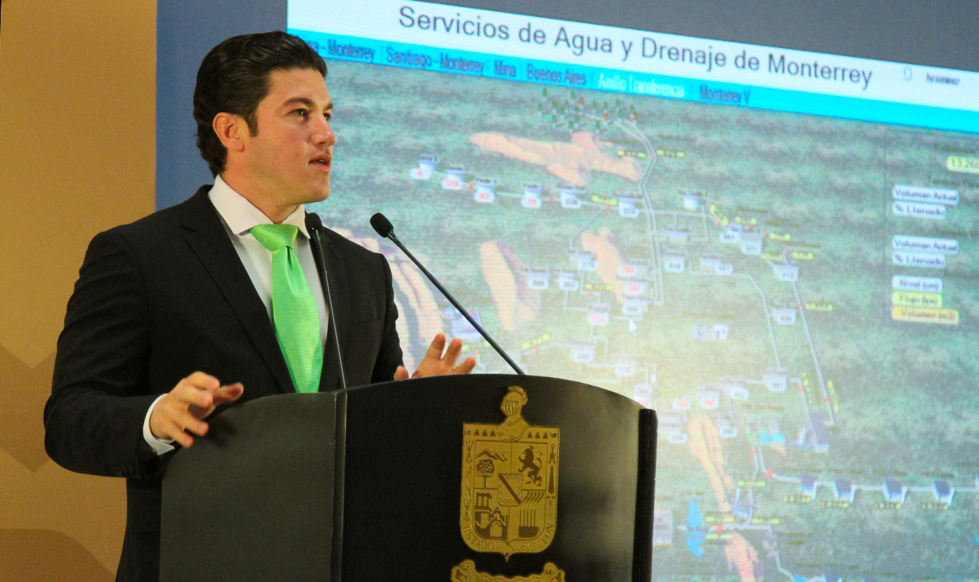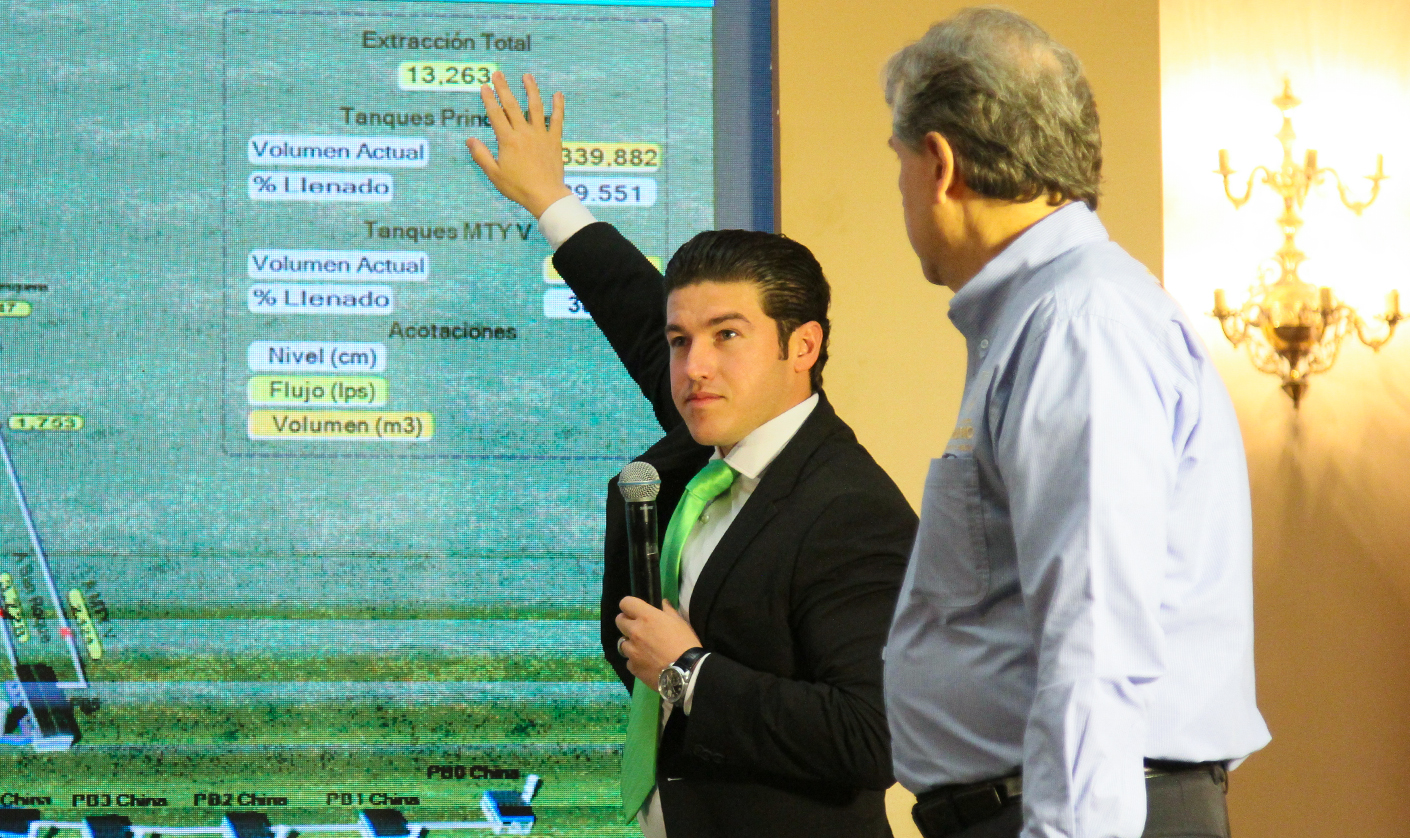 “Pero la gran noticia es que al haber subido ya a 13 mil, de 11 mil a 13 mil (litros por segundo) vean ustedes, sean testigos ustedes de los tanques, la mitad de la ciudad, miren Santa Catarina, San Pedro, Contry, San Roque, Apodaca y Guadalupe”, dijo.