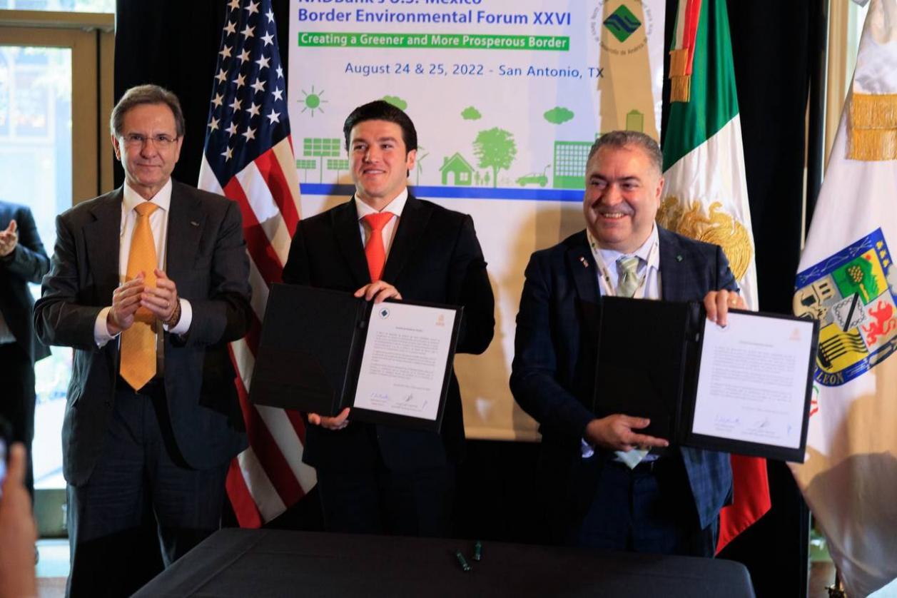 Al participar en el Foro Ambiental Fronterizo 2022, organizado por el Banco de Desarrollo de América del Norte (NADBank), el Gobernador Samuel Alejandro García Sepúlveda firmó un convenio de colaboración con la institución financiera para estudiar proyectos binacionales en materia hídrica.