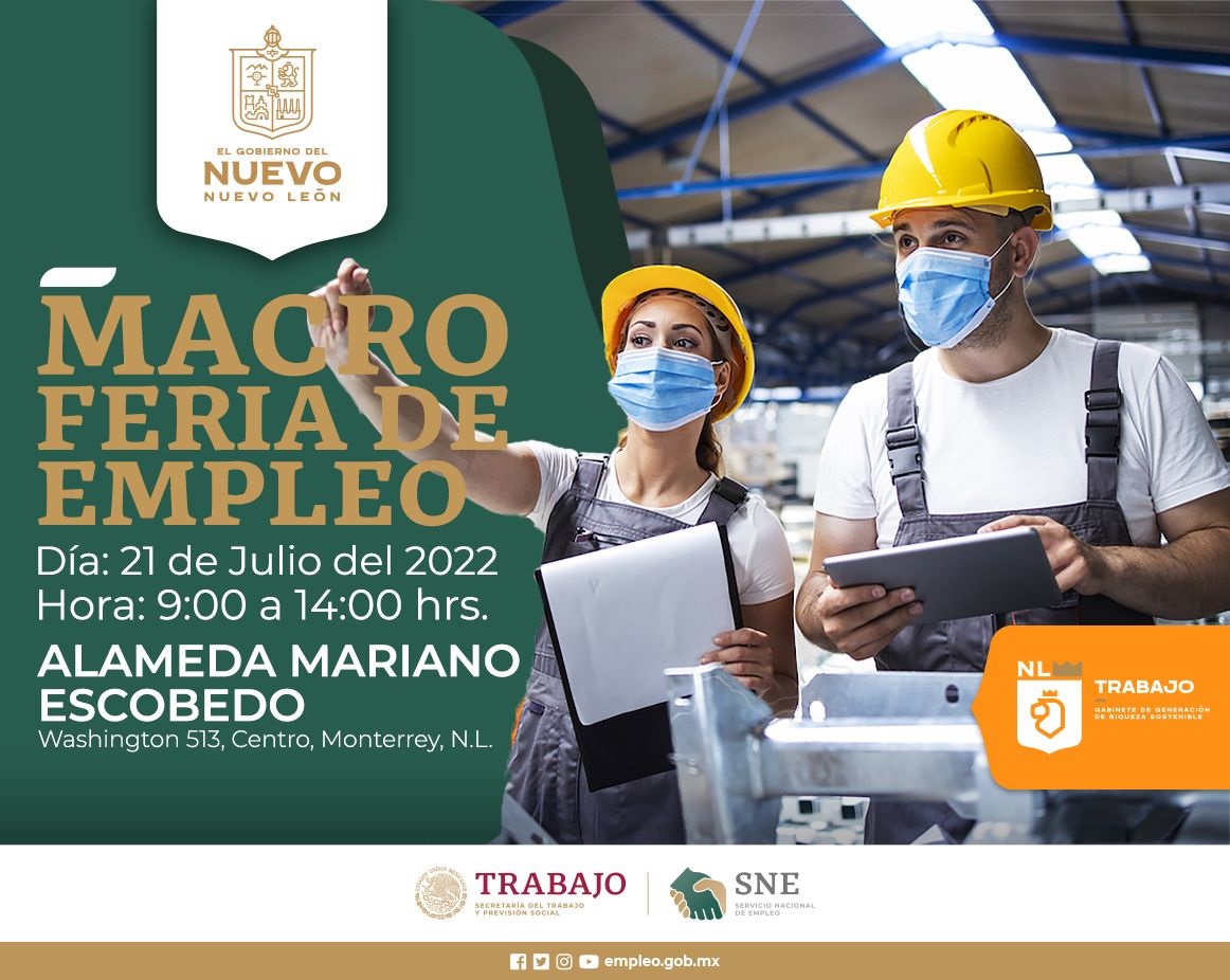 El 21 de julio se realizará la Macro Feria del Empleo en la Alameda Mariano Escobedo de 9:00 de la mañana a 2:00 de la tarde. donde más de 100 empresas ofertarán 5,576 vacantes de empresas como el Pollo Loco, Yazaki, Christus Muguerza, Kidzania, Pepsico, Sears, Cinemex, Hotel SAFI entre muchas más.