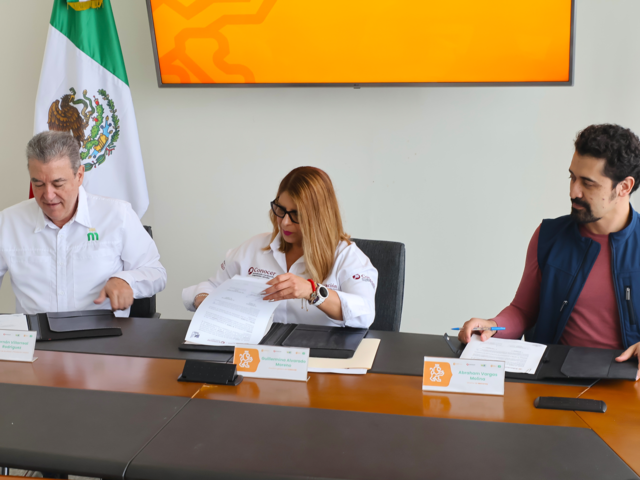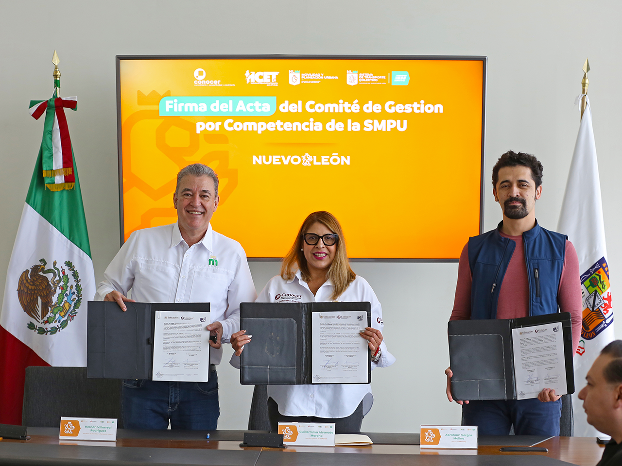 El secretario de Movilidad y Planeación Urbana, Hernán Villarreal Rodríguez y Guillermina Alvarado Moreno, directora general del CONOCER encabezaron la firma del acta de integración del Comité.
