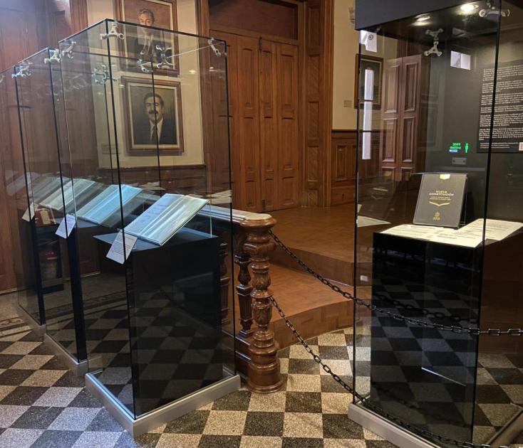 La exposición, que forma parte de la celebración del primer aniversario de la nueva Constitución de Nuevo León, aprobado el 1 de octubre de 2023, muestra seis reproducciones contemporáneas de las constituciones que han regido los destinos del Estado, destacando sus fechas de promulgación y sus particularidades
