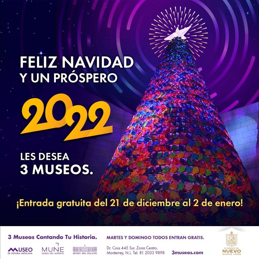 Como un presente para fomentar la convivencia familiar y conocer la historia, el Museo de Historia Mexicana, el Museo del Noreste y el Museo del Palacio abrirán sus puertas gratuitamente del 21 de diciembre hasta el domingo 2 de enero de 2022, en sus horarios regulares.