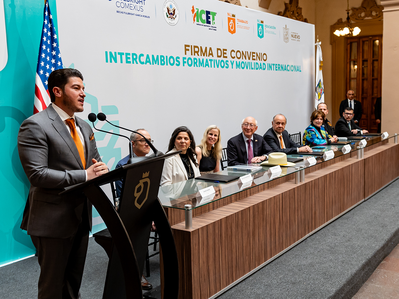 Monterrey, Nuevo León.- Con el objetivo de fortalecer la movilidad académica internacional, los Gobiernos de Nuevo León y de Estados Unidos firmaron un convenio pionero para promover intercambios educativos entre universidades públicas de Nuevo León e instituciones de educación superior estadounidenses.