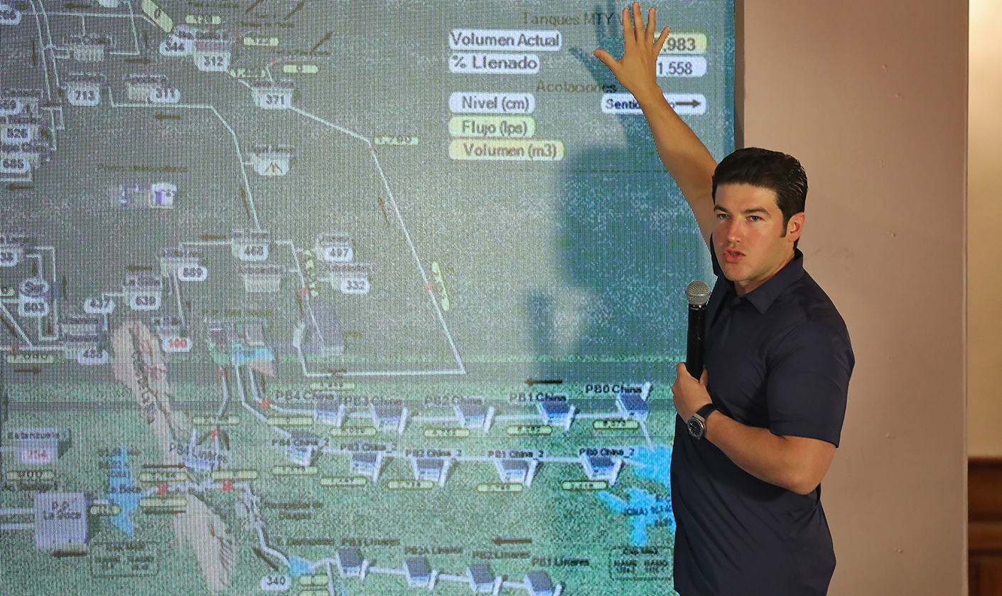 En el Nuevo León Informa en donde estuvo acompañado del director de Agua y Drenaje de Monterrey, Juan Ignacio Barragán; y del director de Protección Civil estatal, Erik Cavazos Cavazos; el Mandatario neolonés dijo que de esta manera el estado alcanzó el superávit hídrico que no se tenía en los últimos años.
