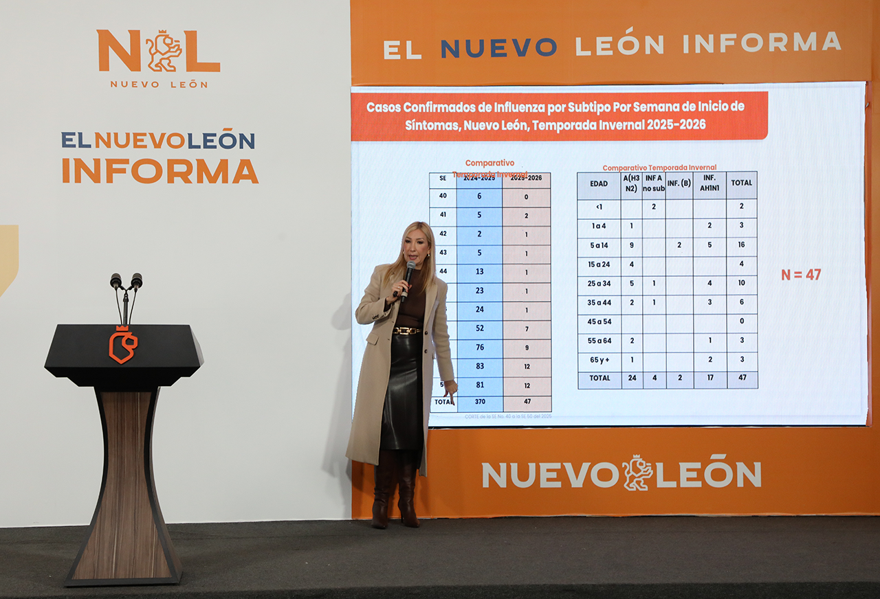 Durante el Nuevo León Informa, la titular de la dependencia, Alma Rosa Marroquín Escamilla, presentó el panorama epidemiológico actual y explicó que, aunque a nivel internacional se ha identificado una modificación genética del virus, en el estado no existe una alerta sanitaria activa.