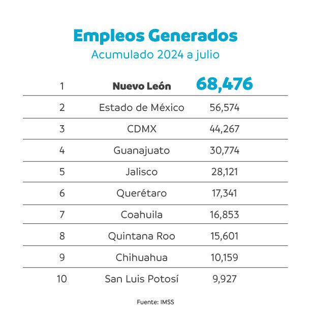 La cifra de creación de empleos en julio ubicó al estado en el primer lugar en México.