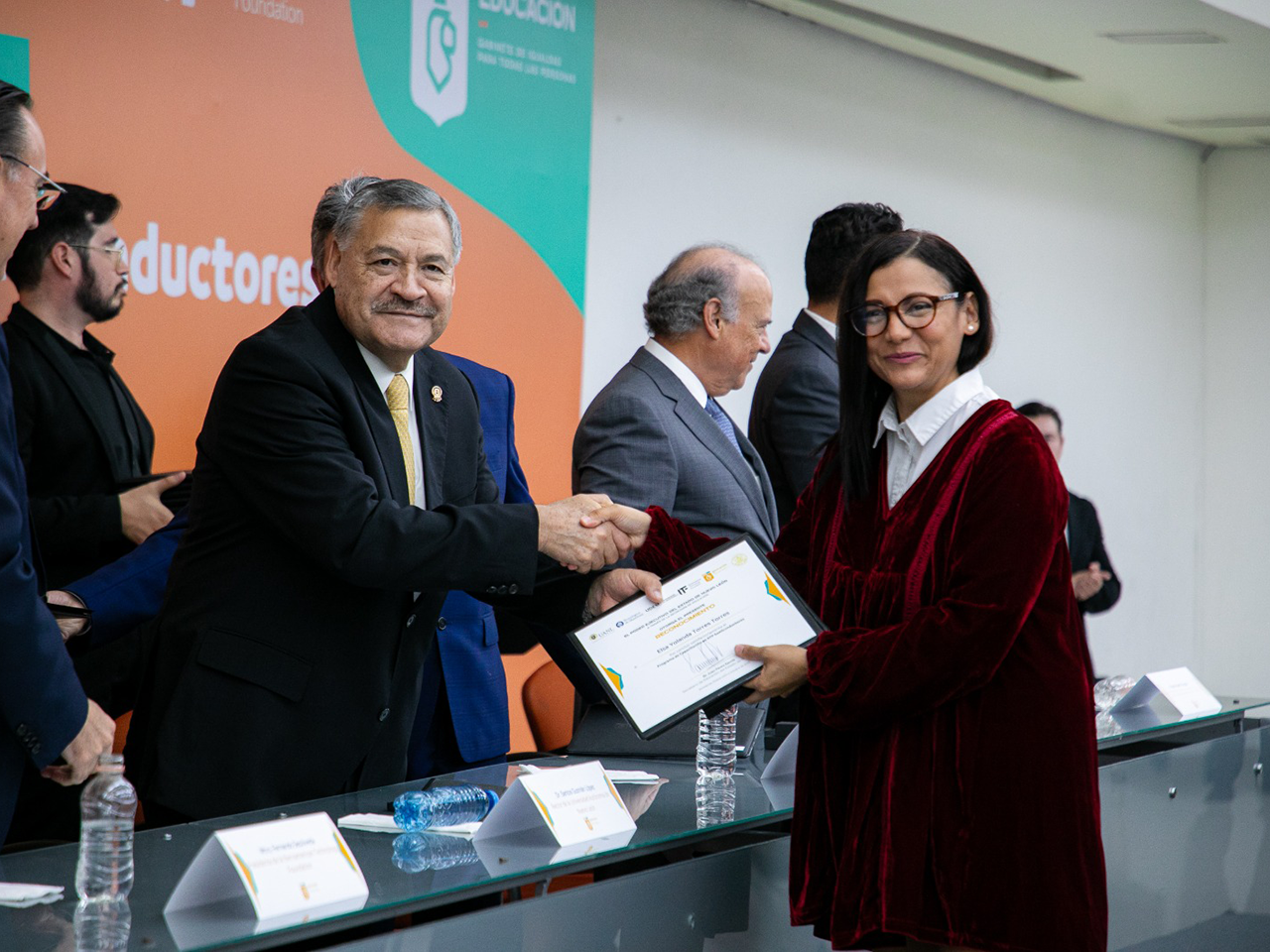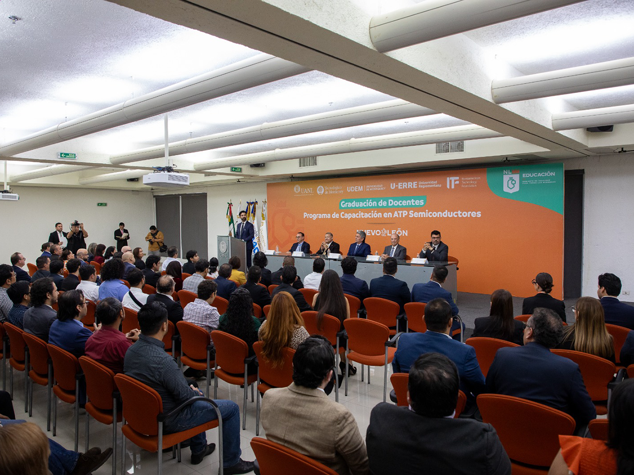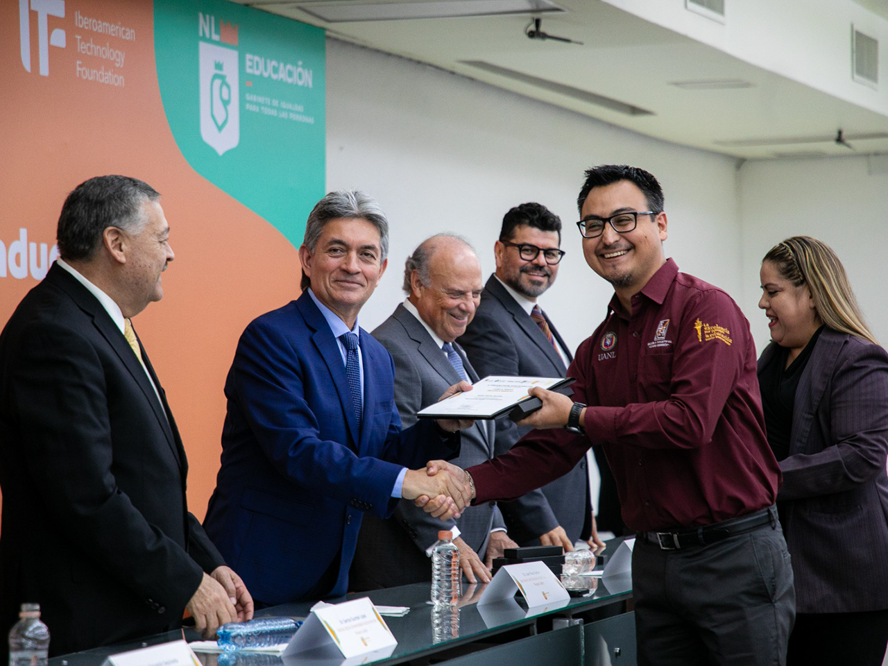 La ceremonia de clausura y entrega de diplomas de acreditación se llevó a cabo en la Biblioteca Universitaria Raúl Rangel Frías y contó con la presencia del Secretario de Educación, Juan Paura García; los rectores Santos Guzmán López, de la UANL, y Mario Páez González, de la UDEM; así como Ricardo Swain Oropeza, decano de la Escuela de Ingeniería y Ciencias del Tecnológico de Monterrey, y Fernando Sepúlveda, presidente de la IberoamericanTechnology Foundation.