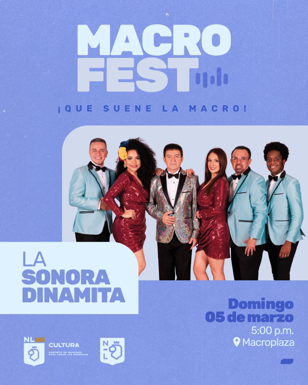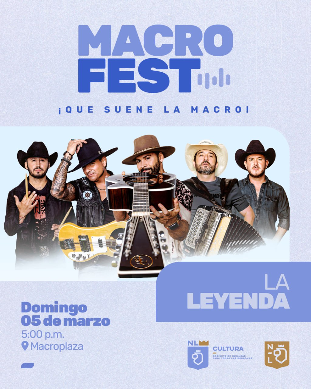 Monterrey, Nuevo León.- La Secretaria de Cultura del Gobierno del Estado, Melissa Segura, confirmó para el próximo 5 de marzo a las 17:00 horas la participación del grupo musical Los Ángeles Azules, dentro del MacroFest 2023, en la Explanada de los Héroes.