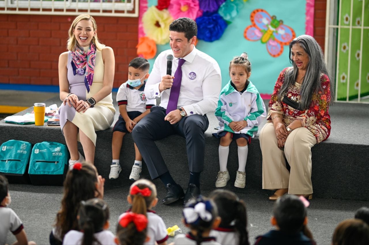 Samuel García comentó que ante la llegada de grandes empresas a Nuevo León, las y los niños se deben de ir preparando mejor sin que les falten las herramientas para estudiar y salir adelante.
