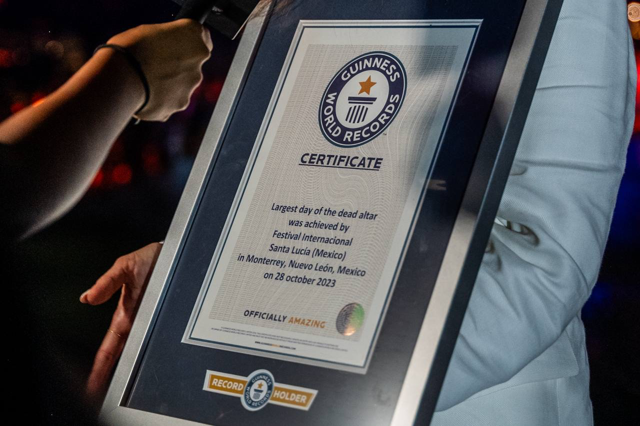“¡Felicidades, Nuevo León! ¡Lo logramos!”, exclamó Lorenia Canavati von Borstel, Presidenta del Patronato del Festival Internacional Santa Lucía al recibir el certificado oficial que los reconocía como récord mundial.